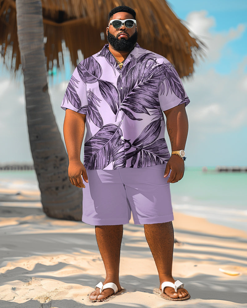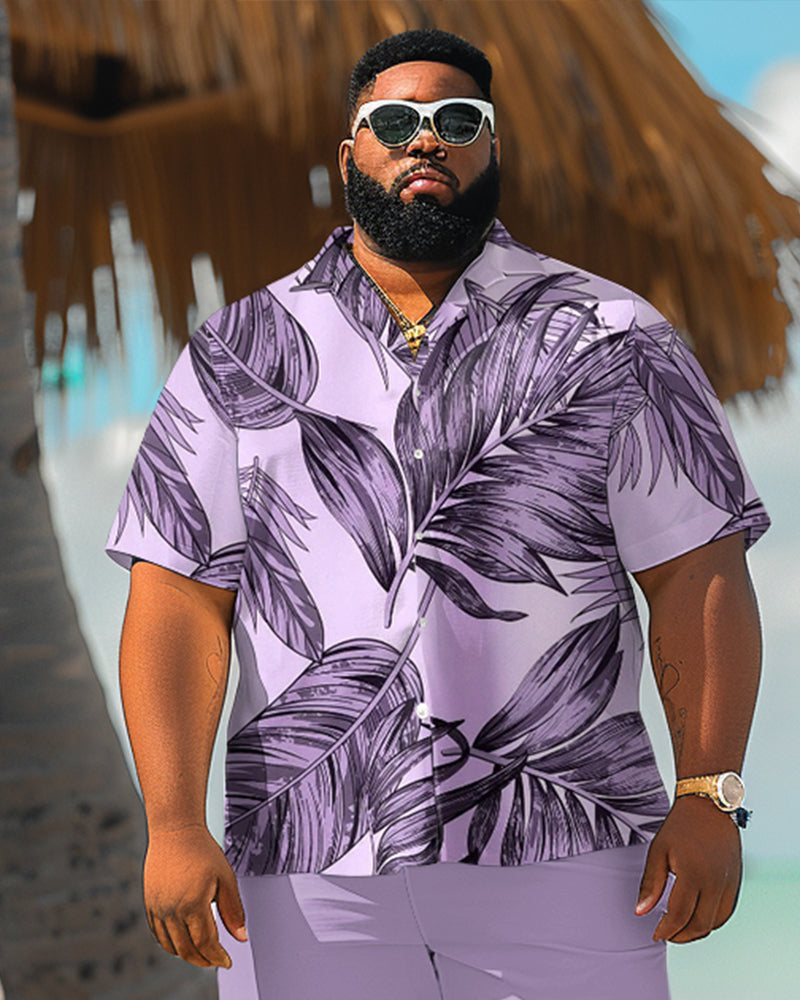 The purple palm leaves print makes this full of elegance. The lapel design creates a flexible shape, good for large-built men. Suit for various summer activities, this set shows you a strong Hawaiian style and romantic atmosphere.