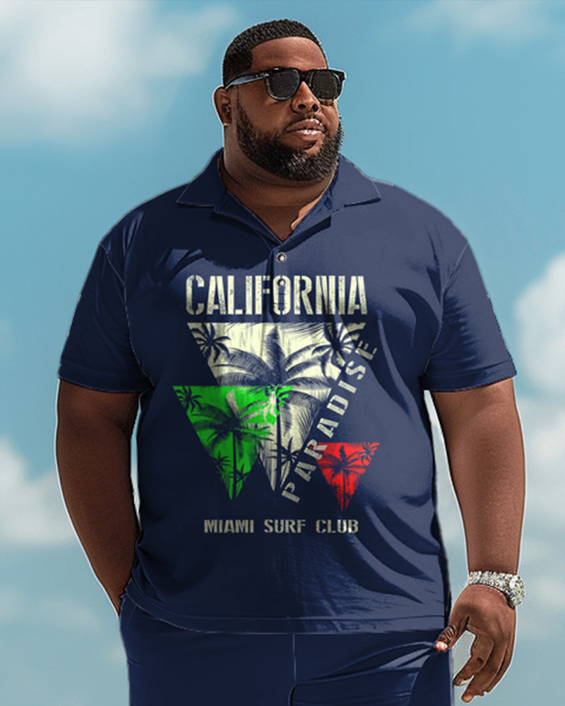 Men's Plus Size Hawaiian Style Graphic Print Polo Shirt Shorts Suit