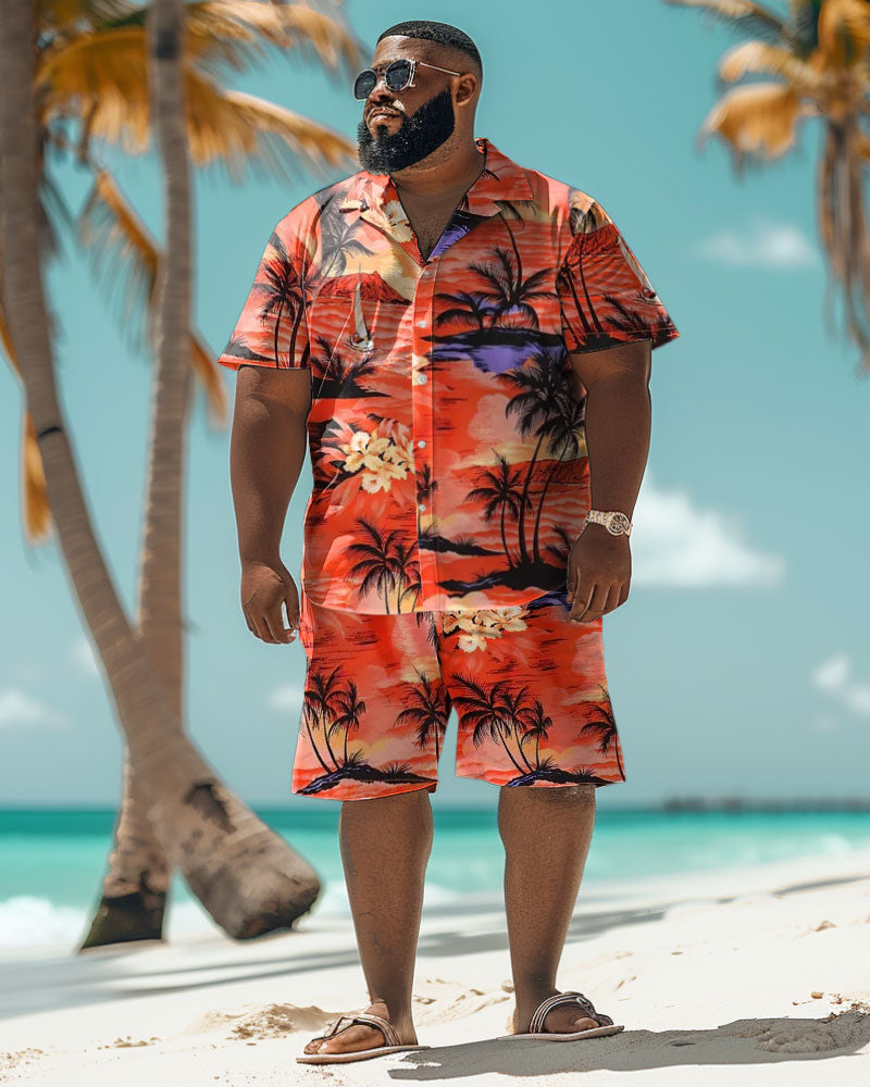 Do you like the golden sunset at the seaside? This red short set for big guys evokes your memories of the island. The tripical prints create a beautiful seaside sunset scenery. Whether worn alone or mixed and matched, you can easily create a colorful summer look and enjoy the romantic style.