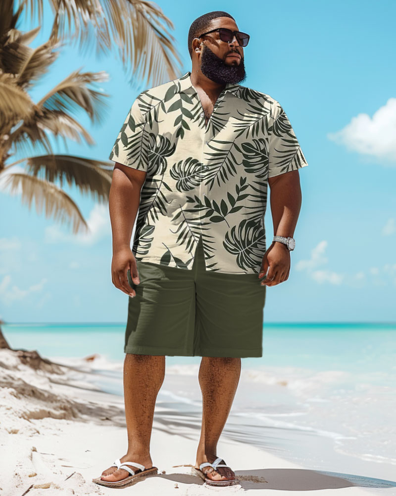 Start your relaxing vacation with this ! The leaf print on the green shirt takes you into the tropics. Paired with green shorts, it creates a harmonious and unified set. The loose fit keeps you cool and comfortable. You can easily show your unique charm on different occasions.