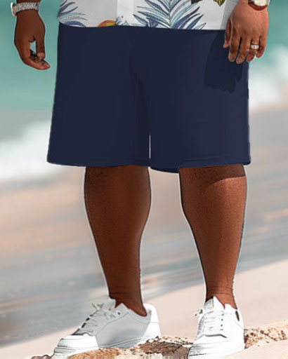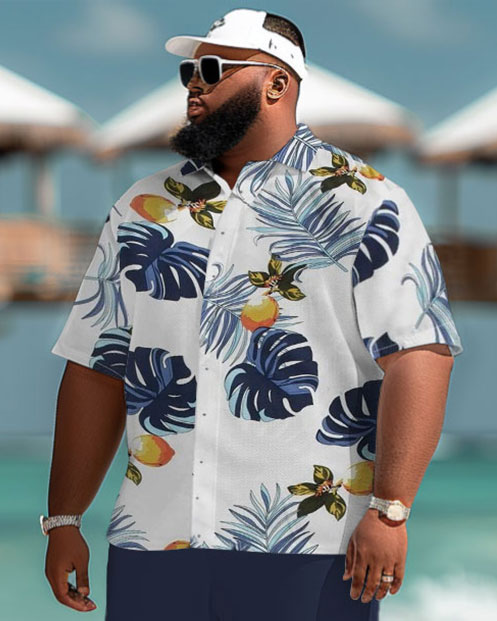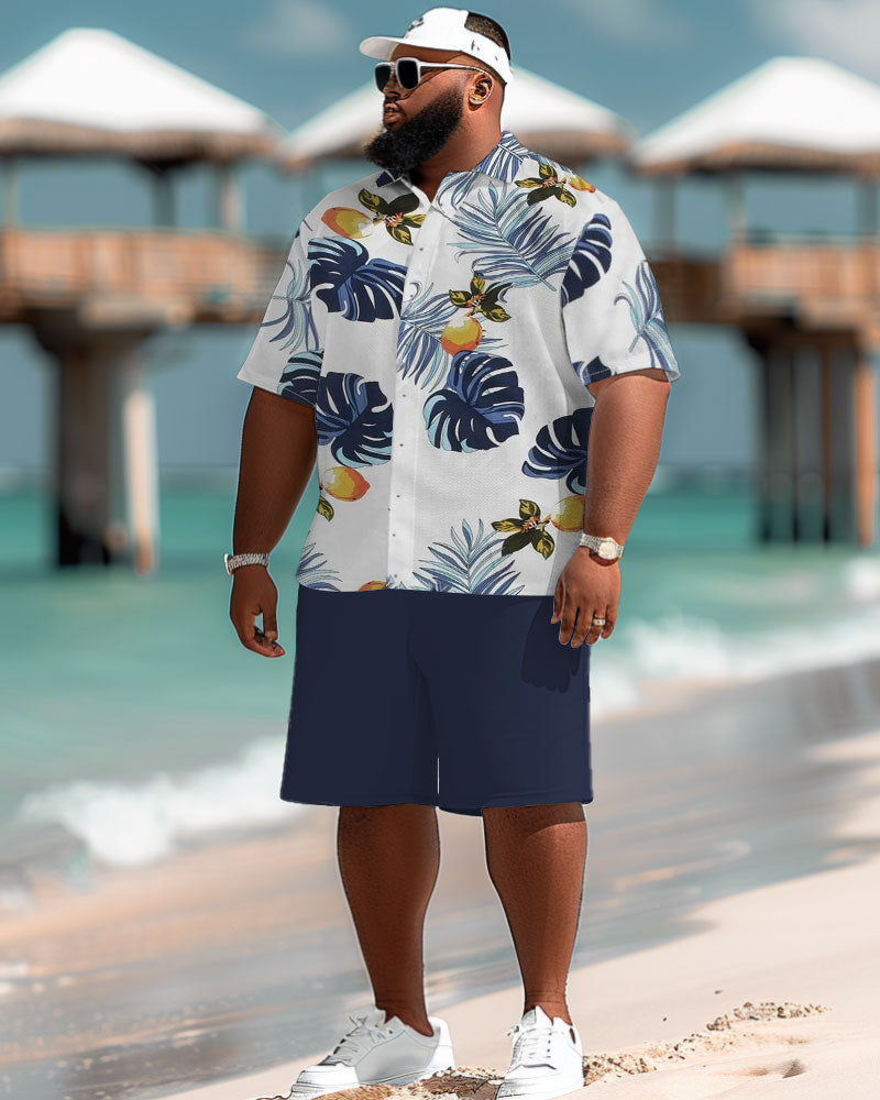 Men's Plus Size Hawaiian Tropical Leaf Print Short Sleeve Shirt Shorts Suit