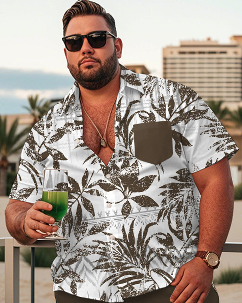 This men's plus size Hawaiian suit features a shirt and shorts printed with tropical palm fronds and geometric green prints for a vibrant island look. The plus size fit is loose and relaxed to accommodate a wide range of body shapes. The green colour is fresh and bright, showing vitality. The high quality fabric is breathable and skin-friendly, allowing the wearer to enjoy a cool summer day and embrace a relaxing holiday with ease.