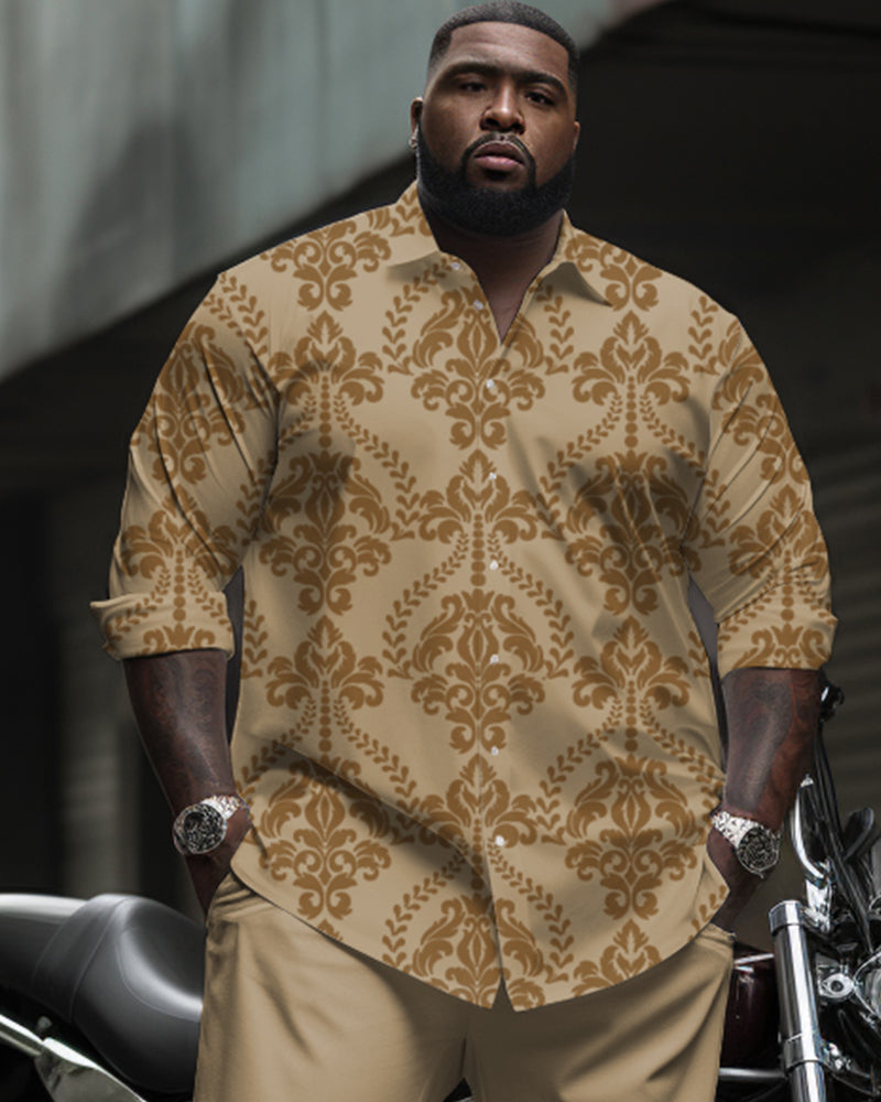 Elevate your wardrobe with our khaki walking set, blending timeless elegance with modern comfort. The shirt showcases subtle tonal floral prints for a vintage-inspired touch, exuding warmth and sophistication. This offers effortless style and all-day ease.