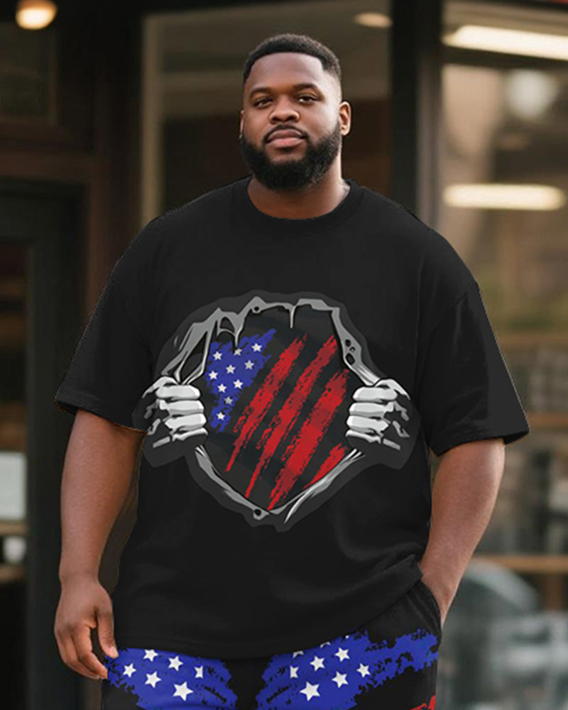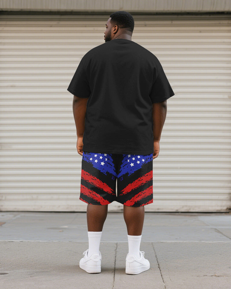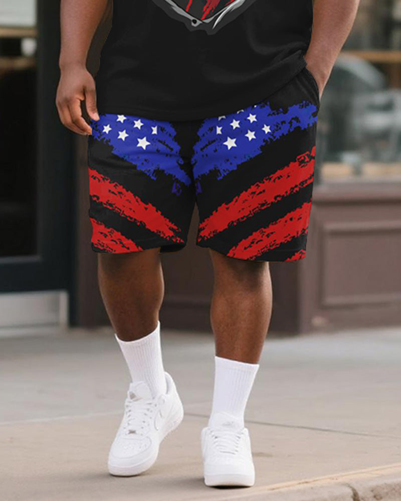 Men's Plus Size Independence Day American Flag Print Round Neck Short Sleeve T-Shirt Shorts Suit