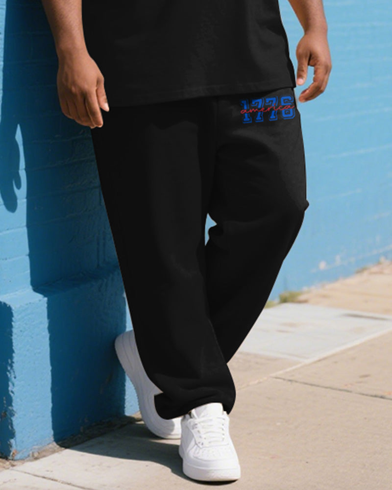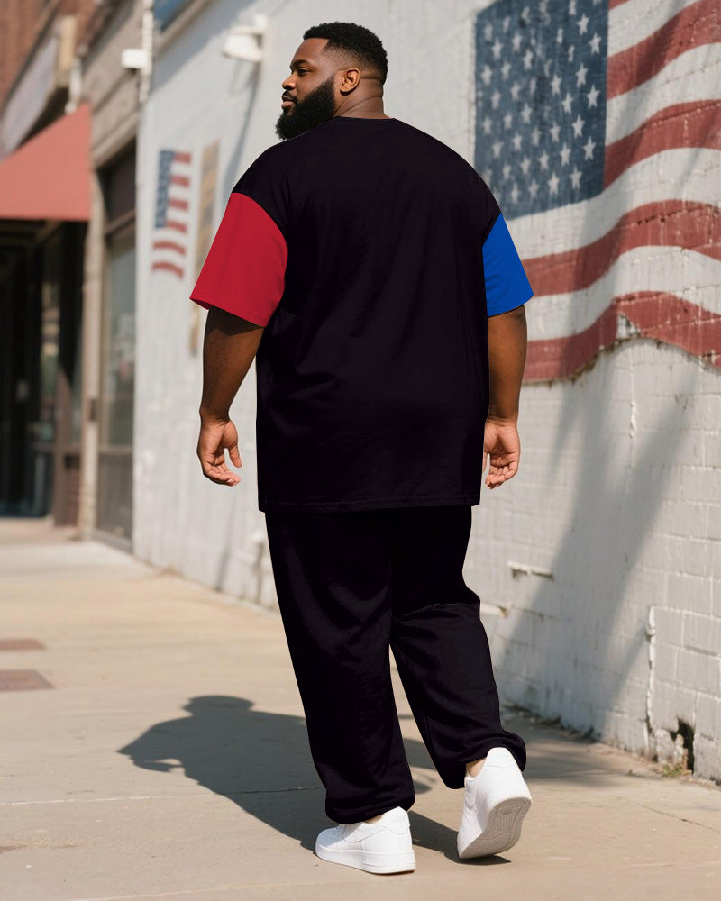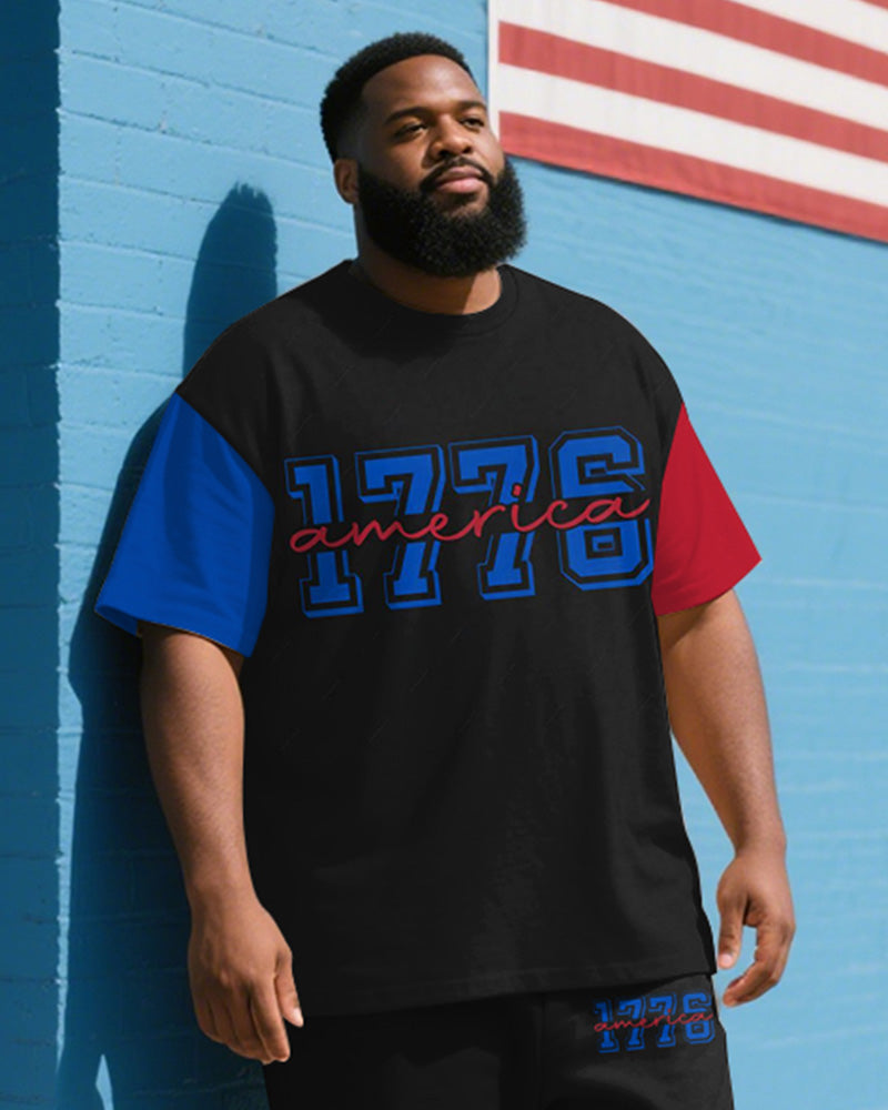 Men's Plus Size Independence Day Colorblock 1776 Letter Print T-Shirt Trousers Suit
