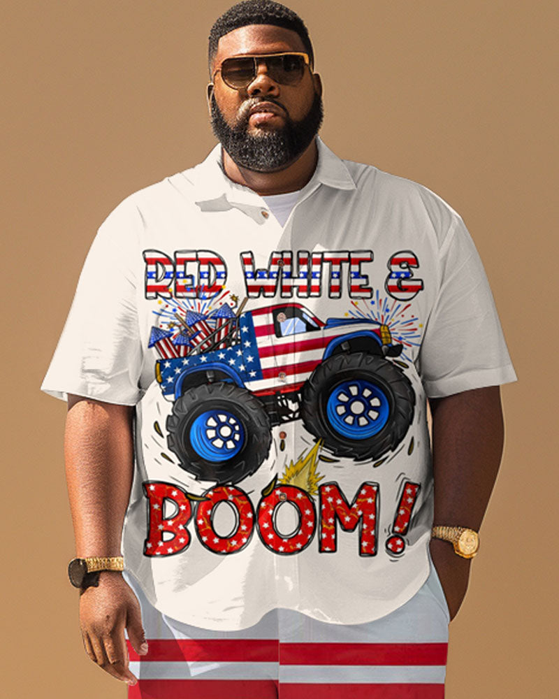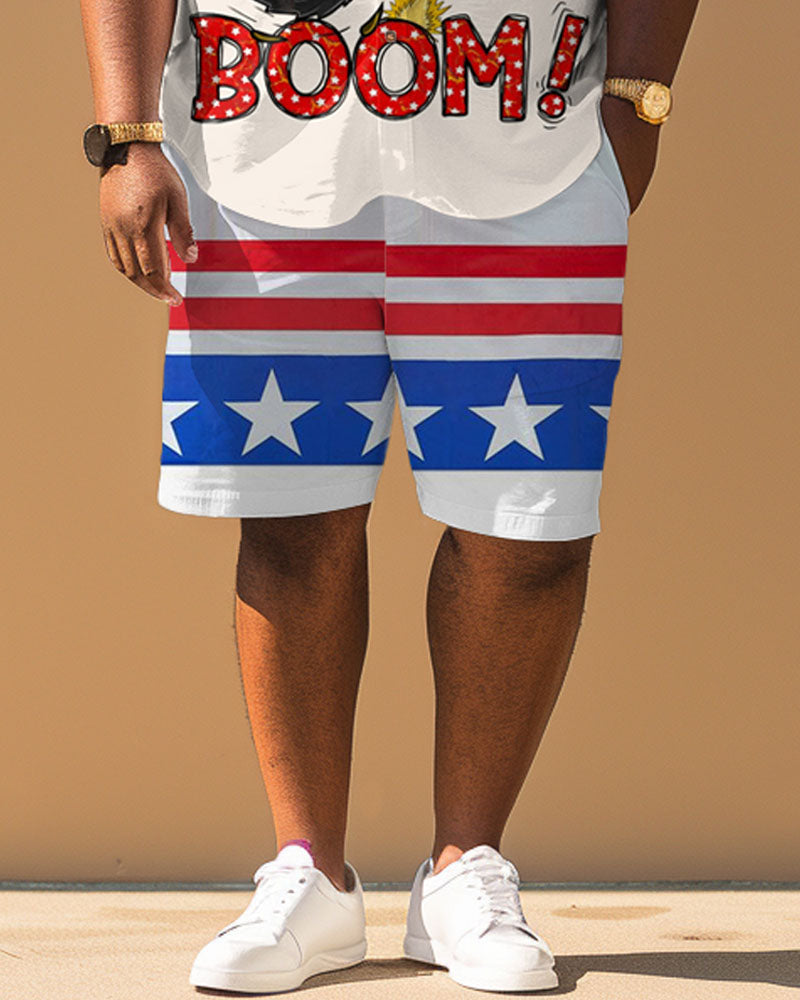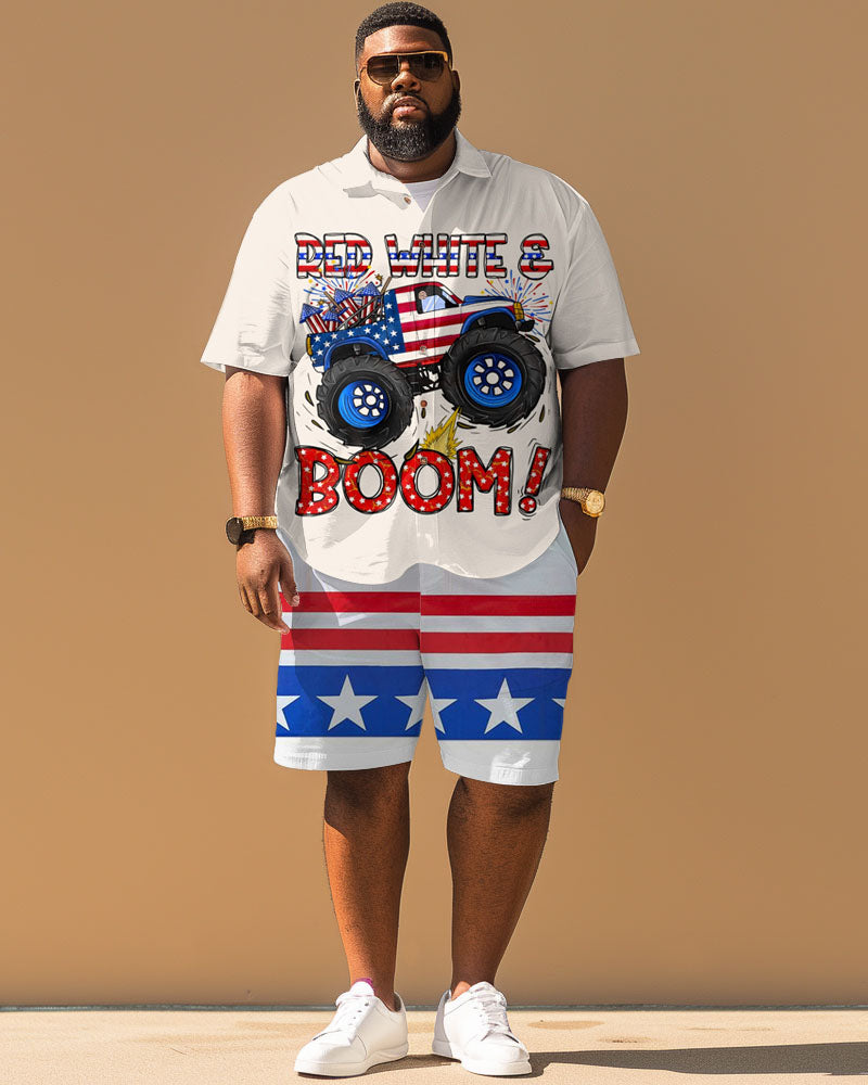 Men's Plus Size Independence Day Flag Car Printed Short Sleeve Shirt Shorts Suit