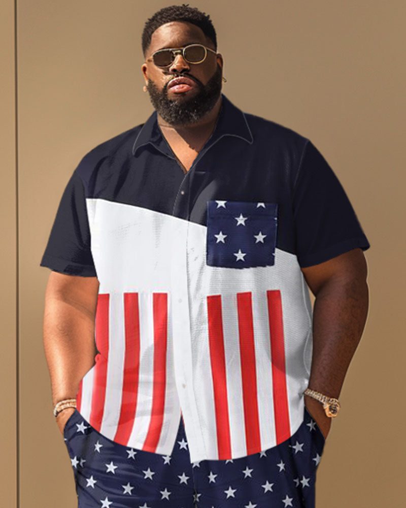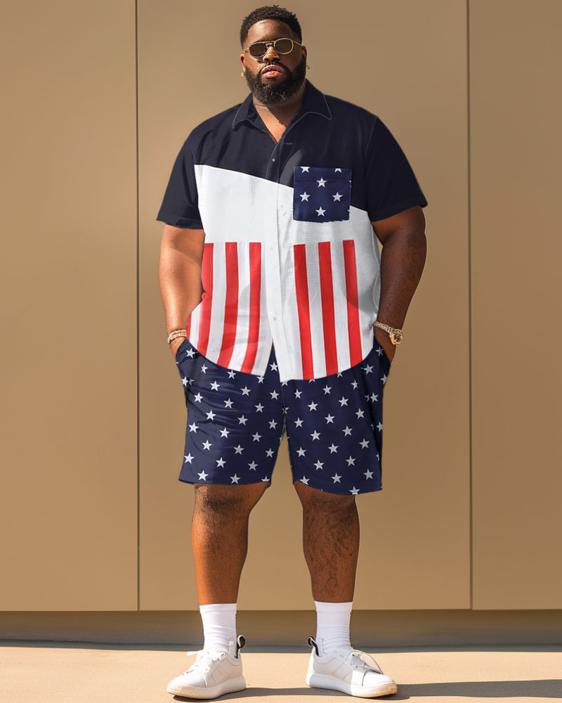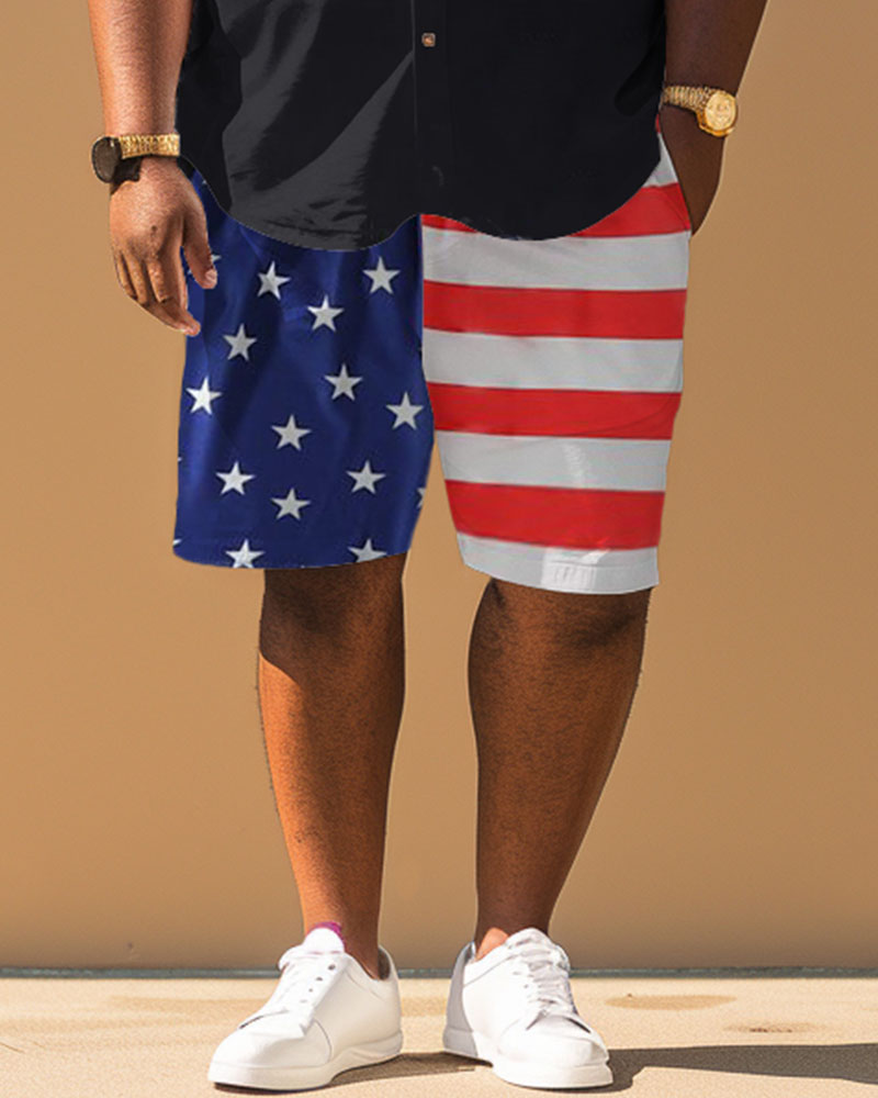 Men's Plus Size Independence Day Flag Patchwork Printed Short Sleeve Shirt Shorts Suit