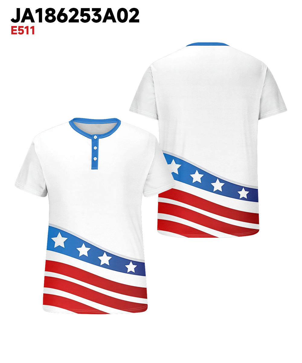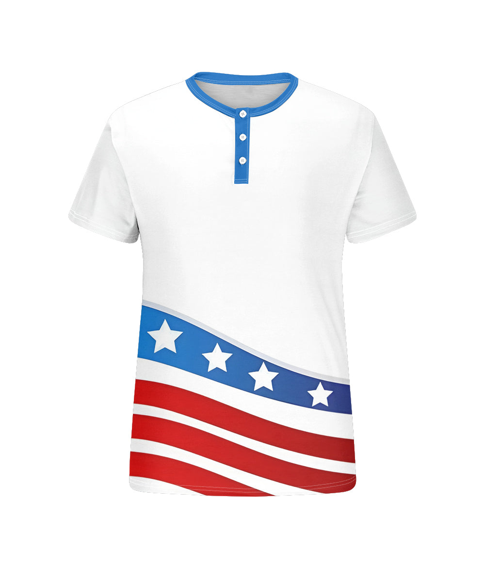 Men's Plus Size Independence Day Flag Print Henley Collar Button Short Sleeve Tee