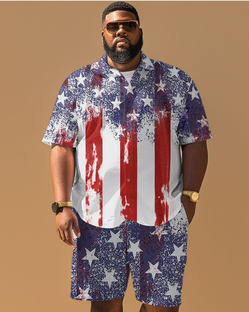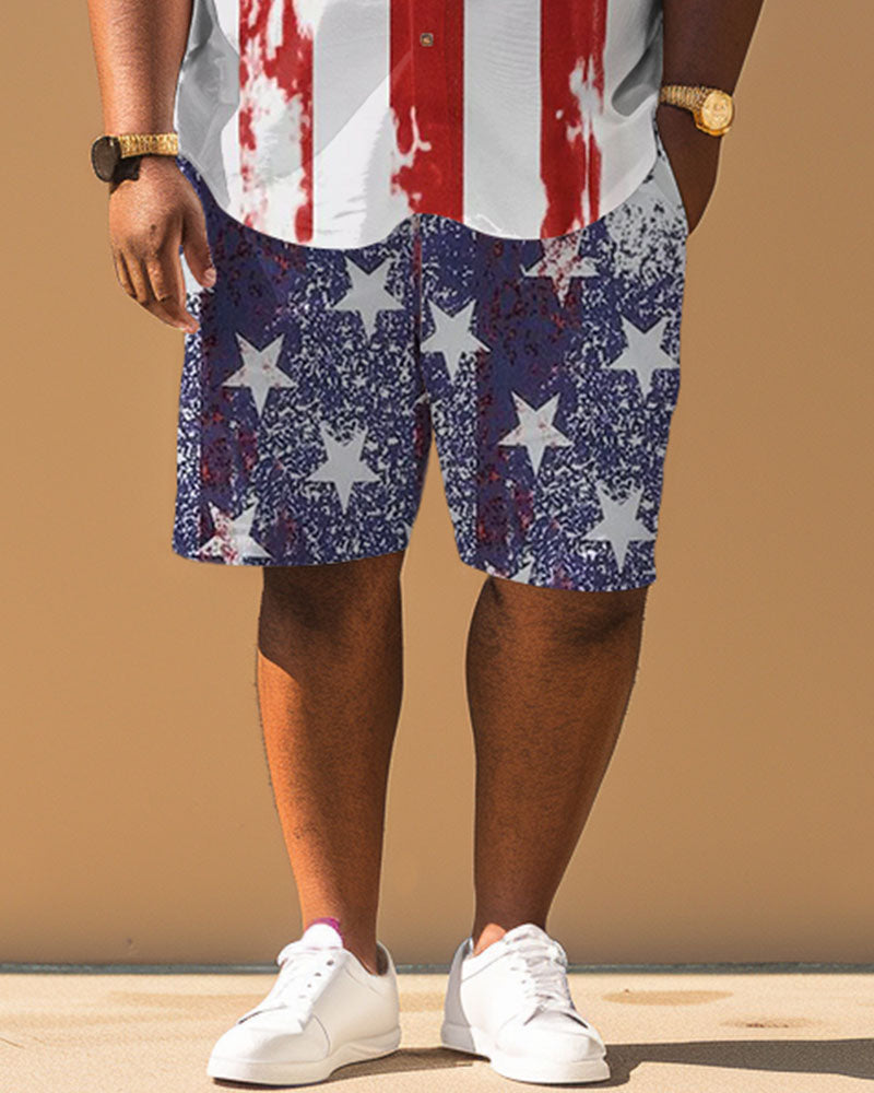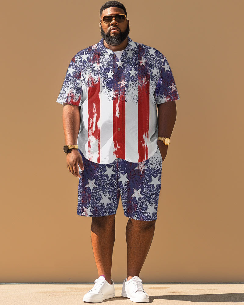 Men's Plus Size Independence Day Flag Splash Ink Stars Print Short Sleeve Shirt Shorts Suit