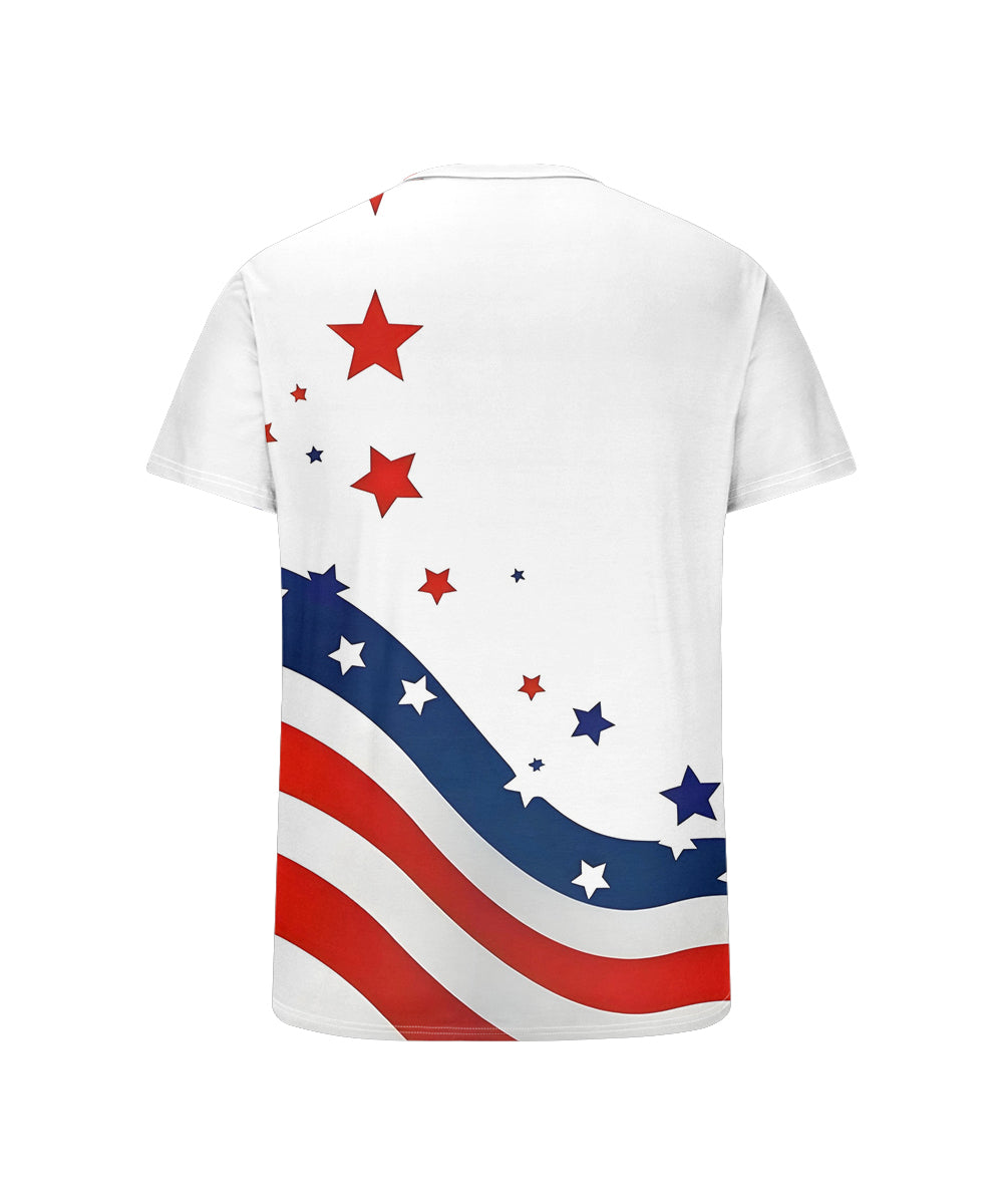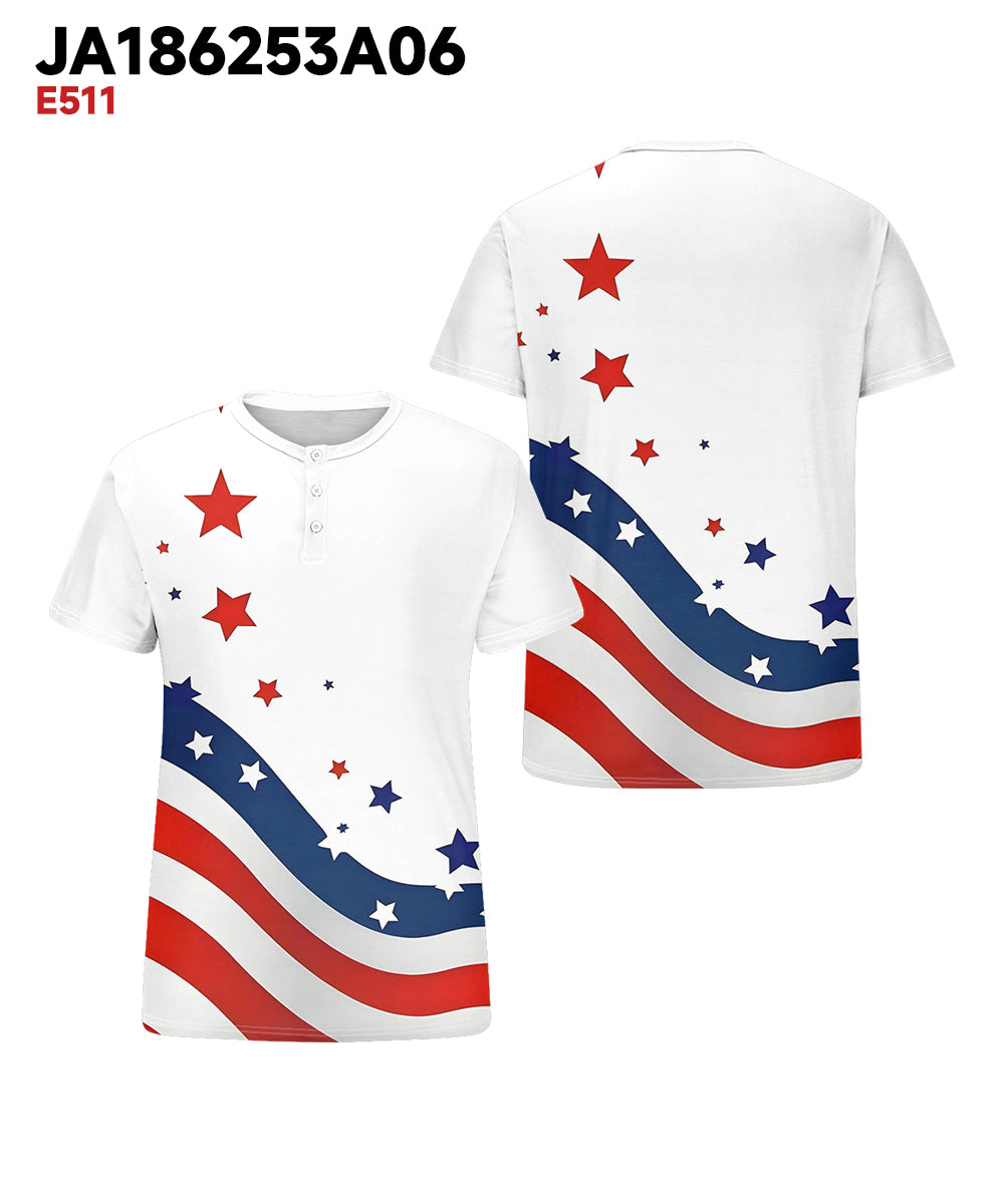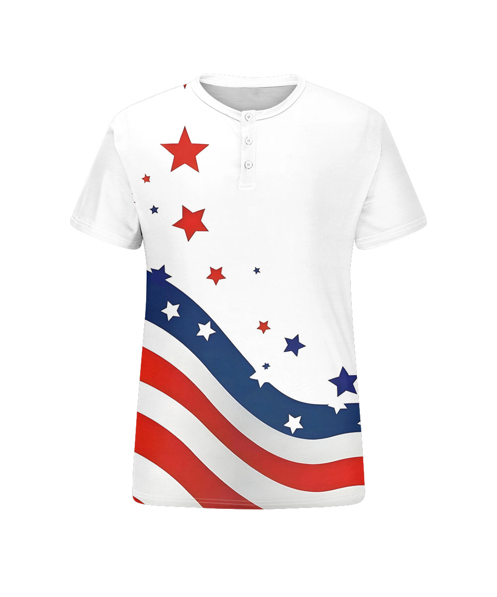 Men's Plus Size Independence Day Flag Wave Print Henley Collar Button Short Sleeve Tee