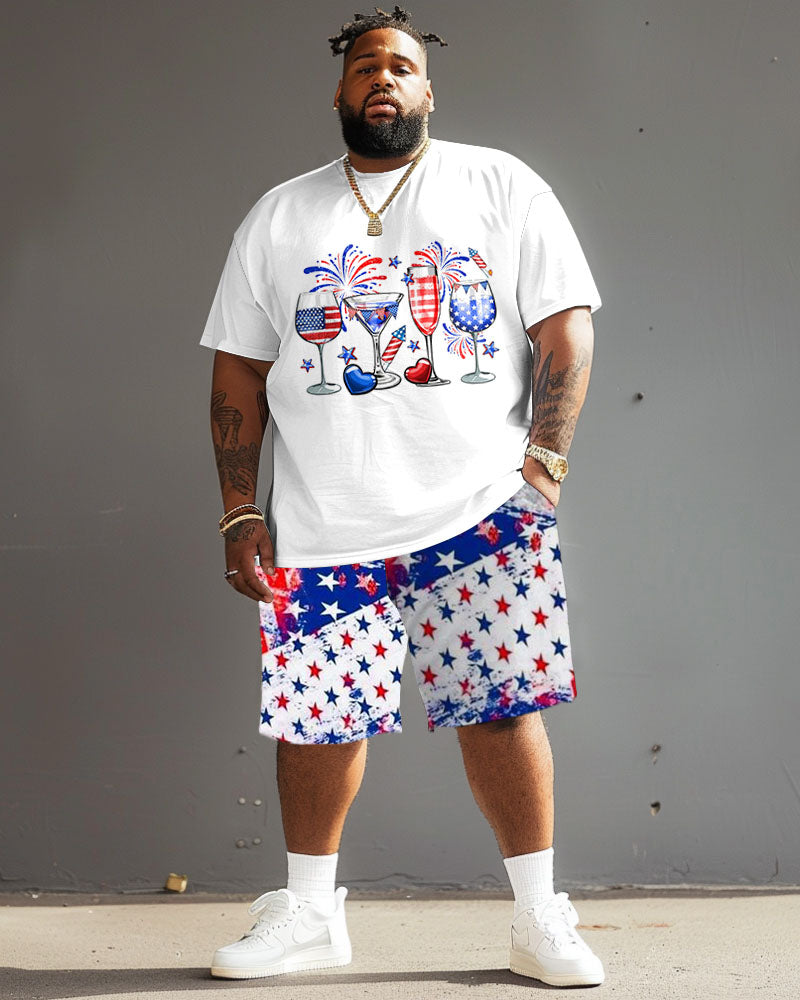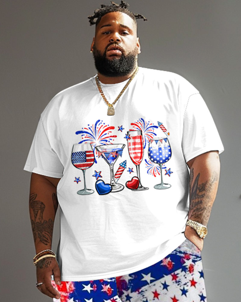Celebrate Independence Day with this men's big & tall two-piece set! It features bold flag-inspired colors, accented with festive prints of fireworks and celebratory wine glasses, which embody the joyful holiday spirit. It offers comfort and style, making it a standout choice for embracing the holiday vibe.