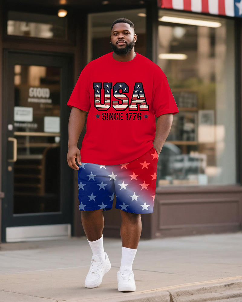 Men's Plus Size Independence Day Red Letter Print Round Neck Short Sleeve T-Shirt Shorts Suit