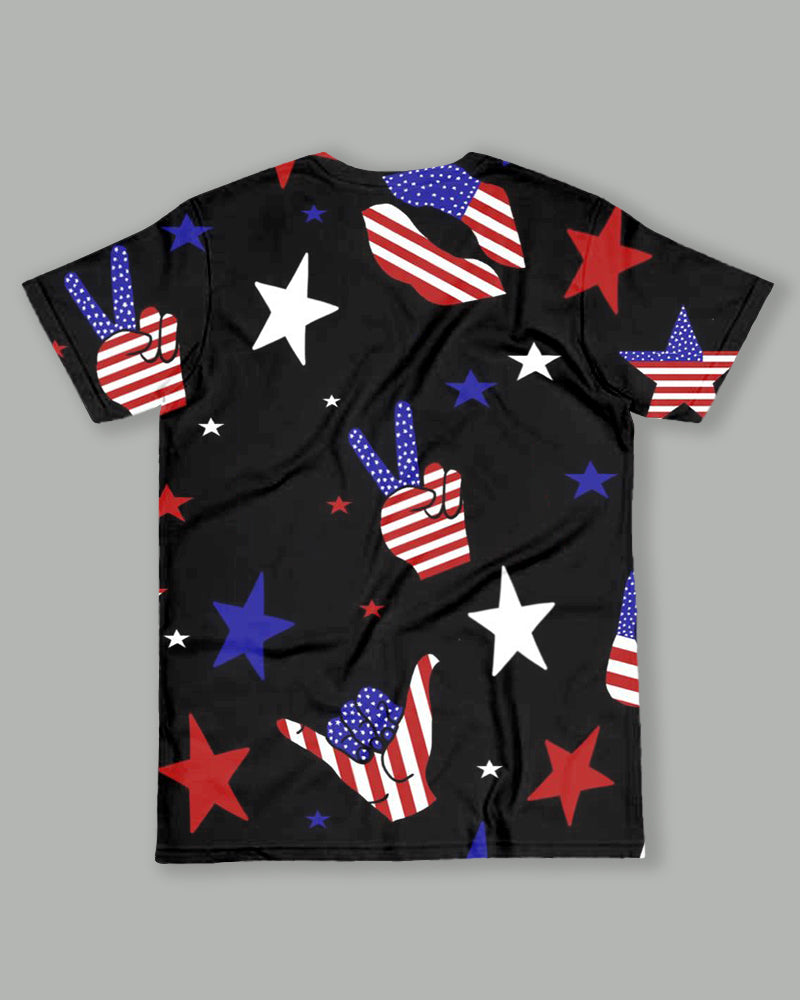 This men's plus size crew neck short sleeve t-shirt is inspired by Independence Day. Classic elements of stars and stripes intertwine for a festive look. The unique gesture print adds character and symbolizes freedom and strength. Plus size fit is loose and comfortable for different body shapes. The skin-friendly fabric is breathable and sweat-absorbent, making it easy to show off your independent and uninhibited fashion attitude in the summer.