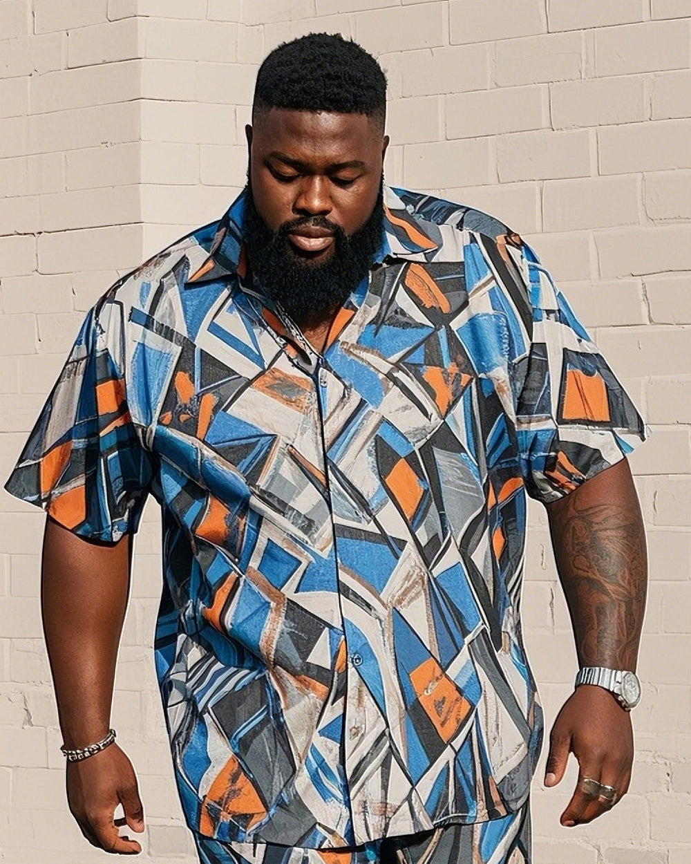 Men's Plus Size Irregular Abstract Geometry Print Short Sleeve Shirt Shorts Suit