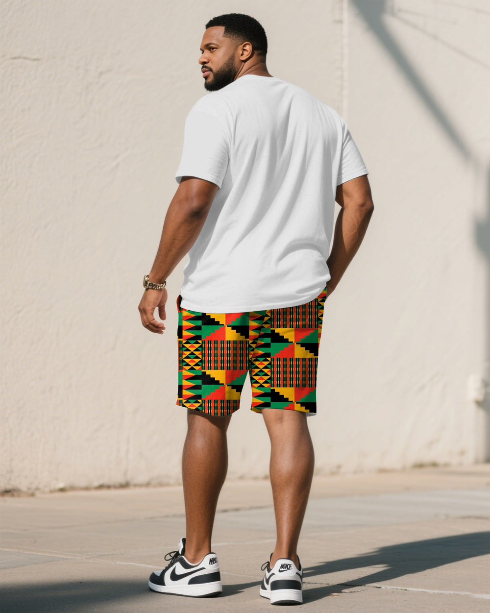 Men's Plus Size June Day Rise & Peace Print Short Sleeve T-Shirt Shorts Suit