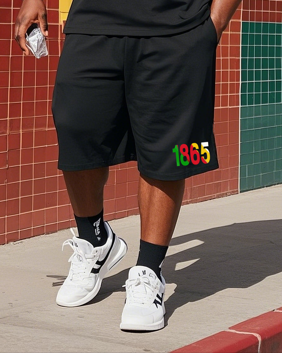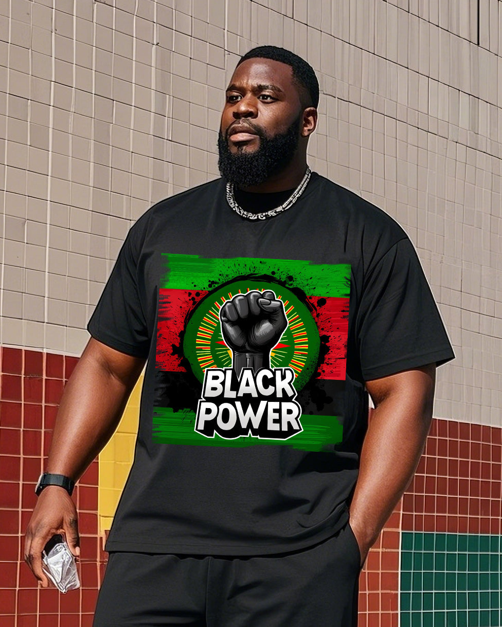 Men's Plus Size June Festival Creative Freedom Day Fist Print T-Shirt Shorts Suit