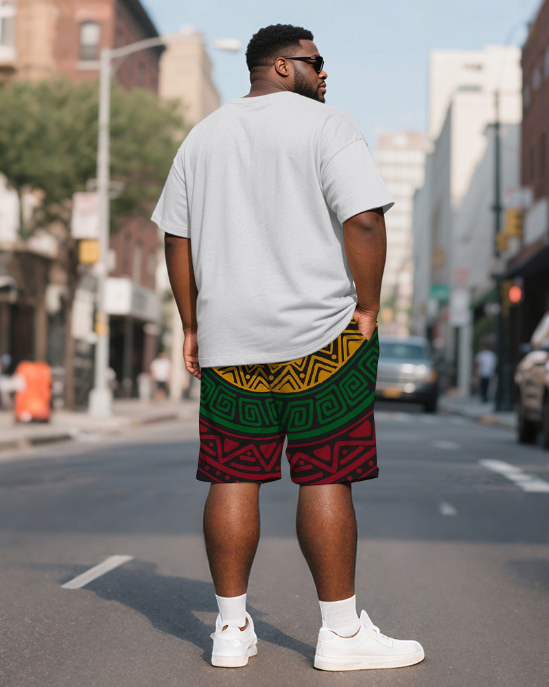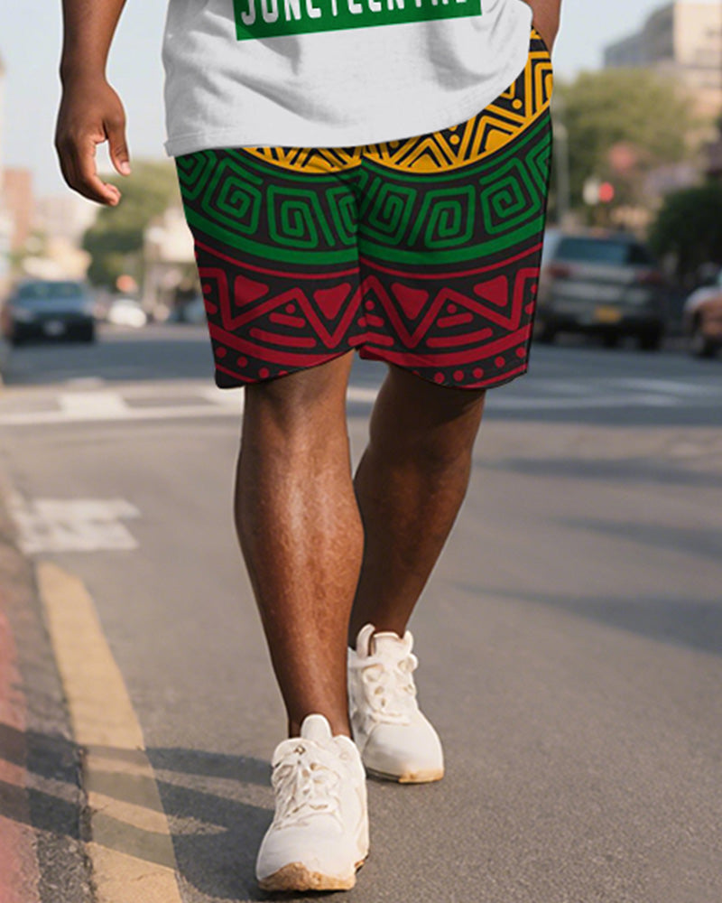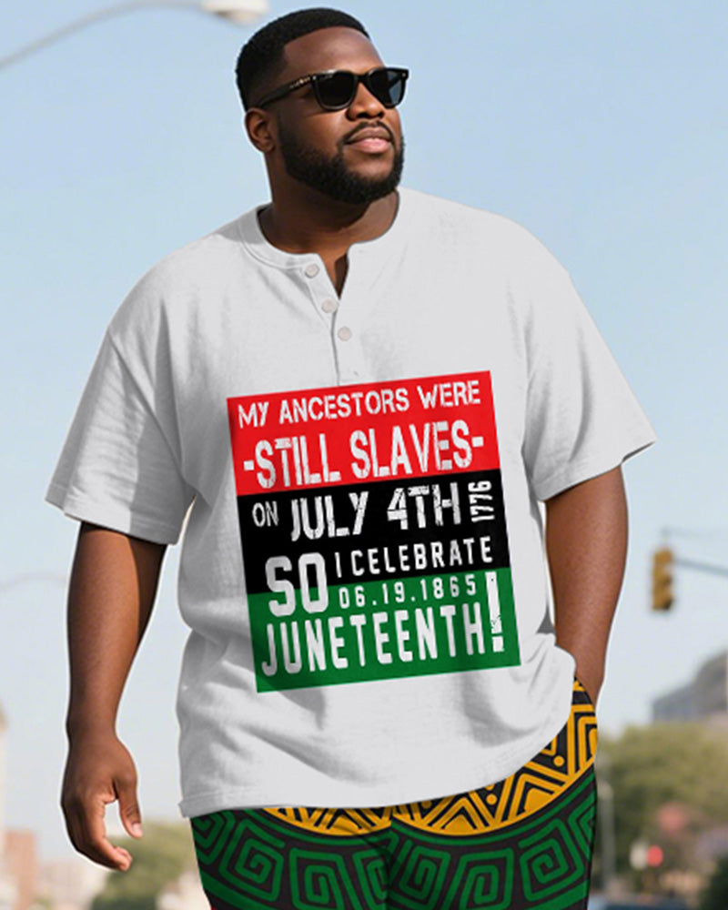 Men's Plus Size Juneteenth Alphabet Print Henley Collar Short Sleeve T-Shirt Shorts Suit