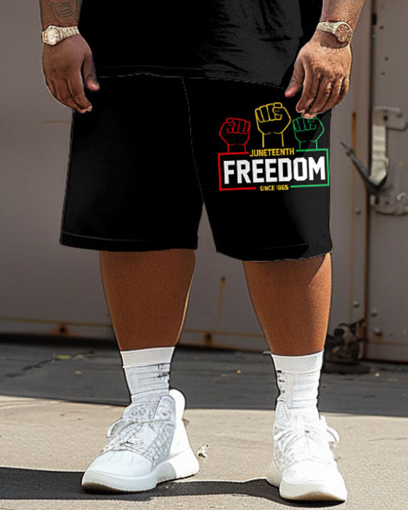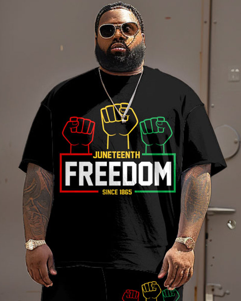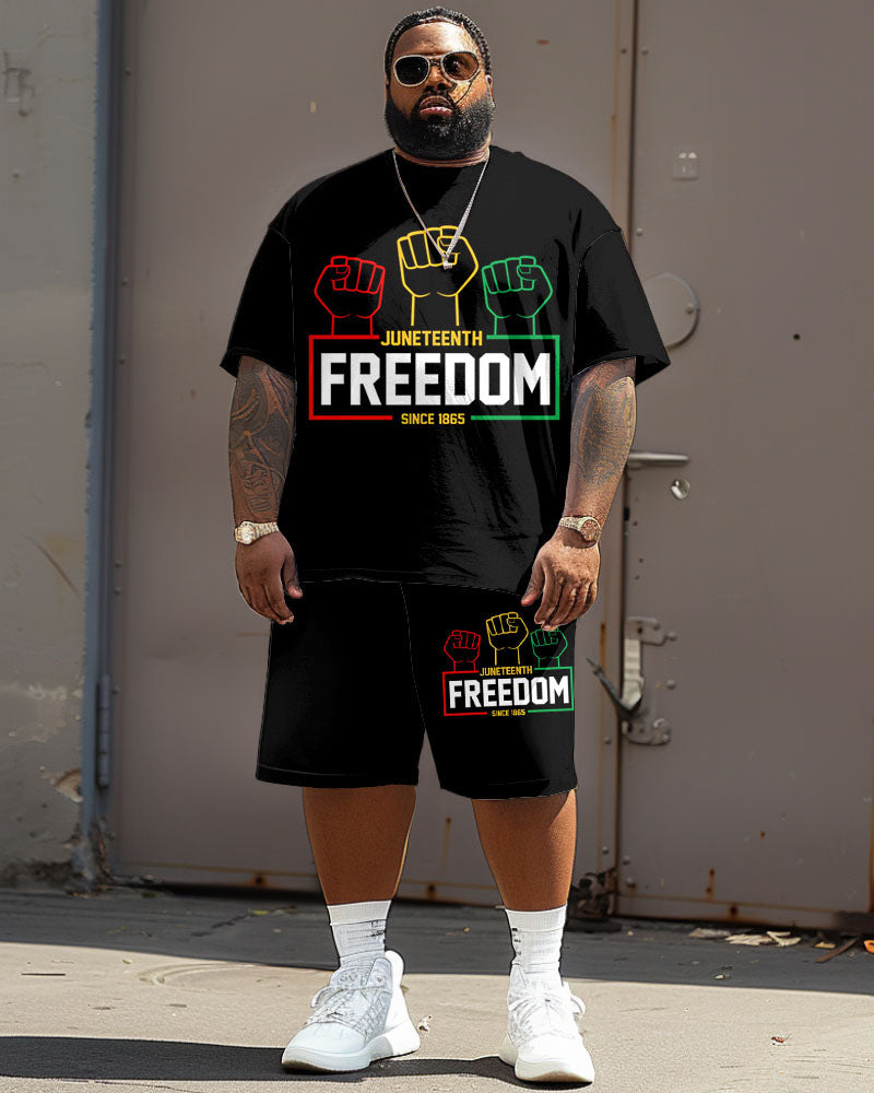 Celebrate in style with this . The "FREEDOM" lettering stands out, paired with a red, yellow, and green fist graphic; this set symbolizes empowerment. This set offers a loose, comfortable fit. It is designed to match the festive spirit while keeping it simple yet stylish.