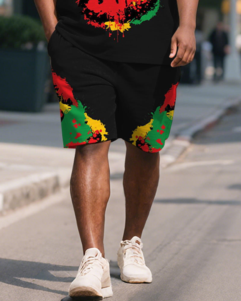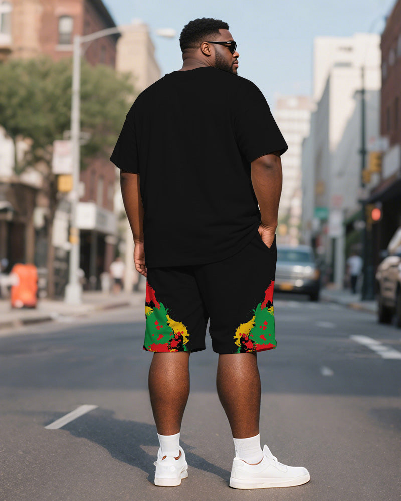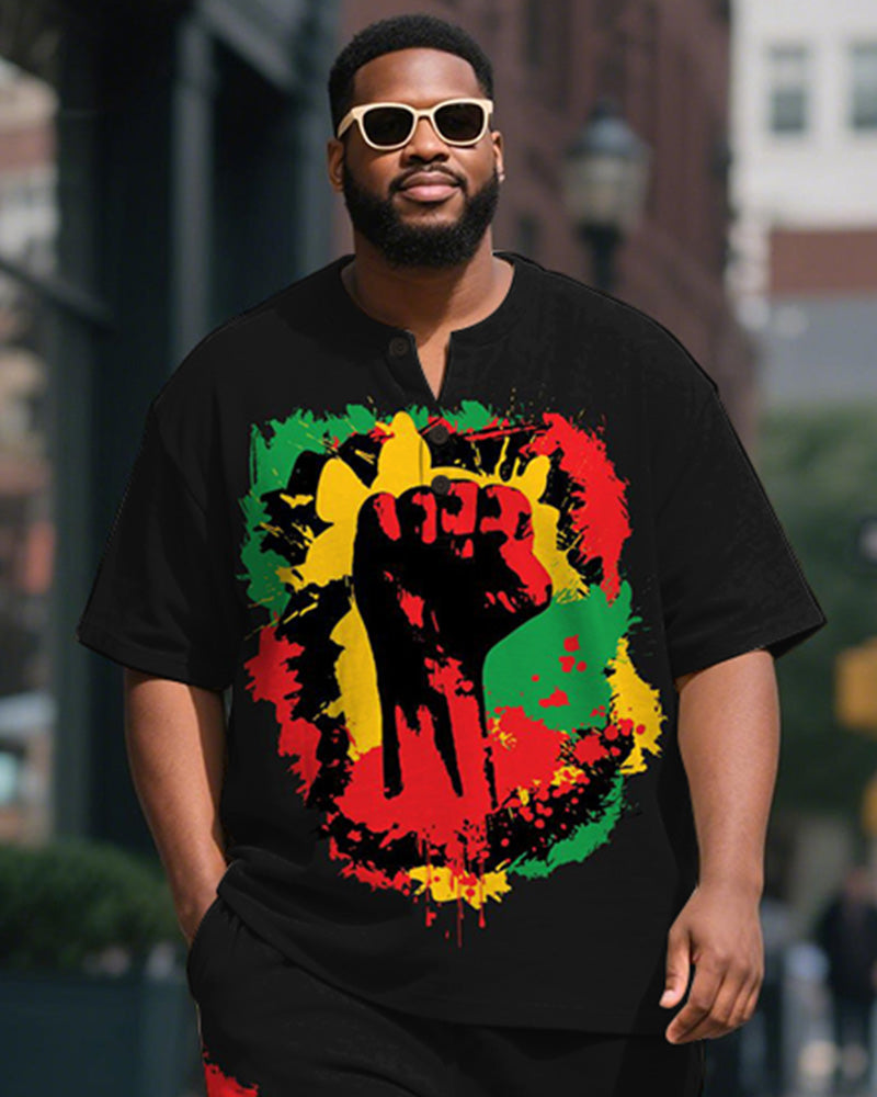Men's Plus Size Juneteenth Fist Print Henley Collar Short Sleeve T-Shirt Shorts Suit