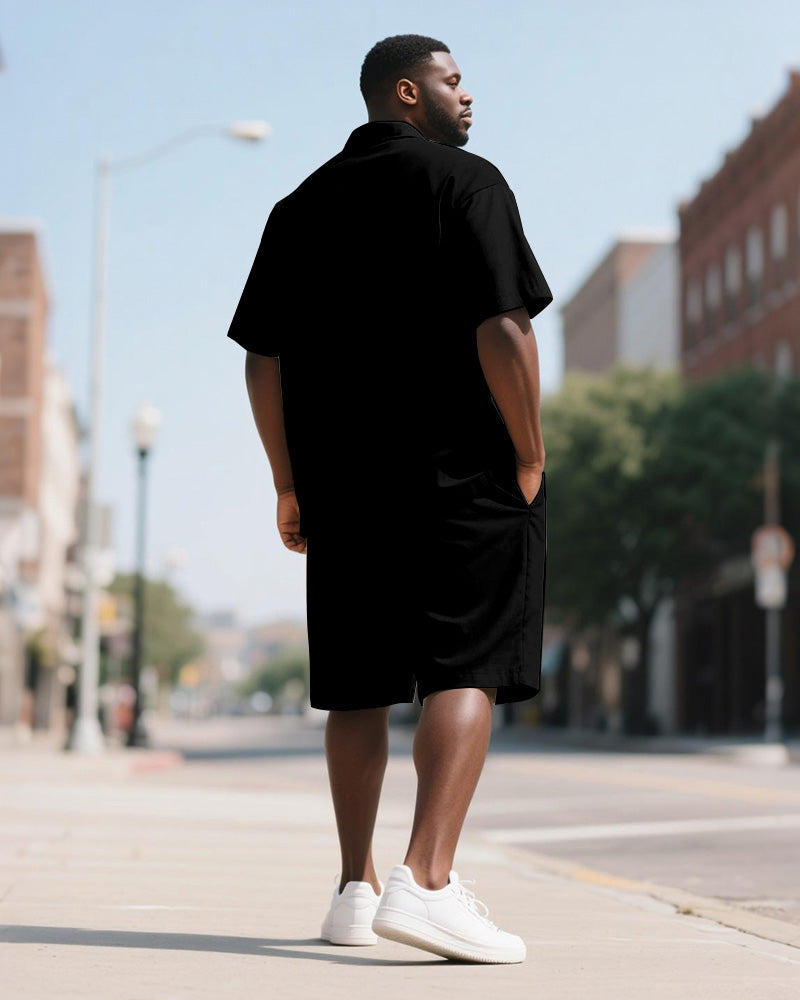 Men's Plus Size Juneteenth Love Chain Letter Print Shirt Shorts Suit