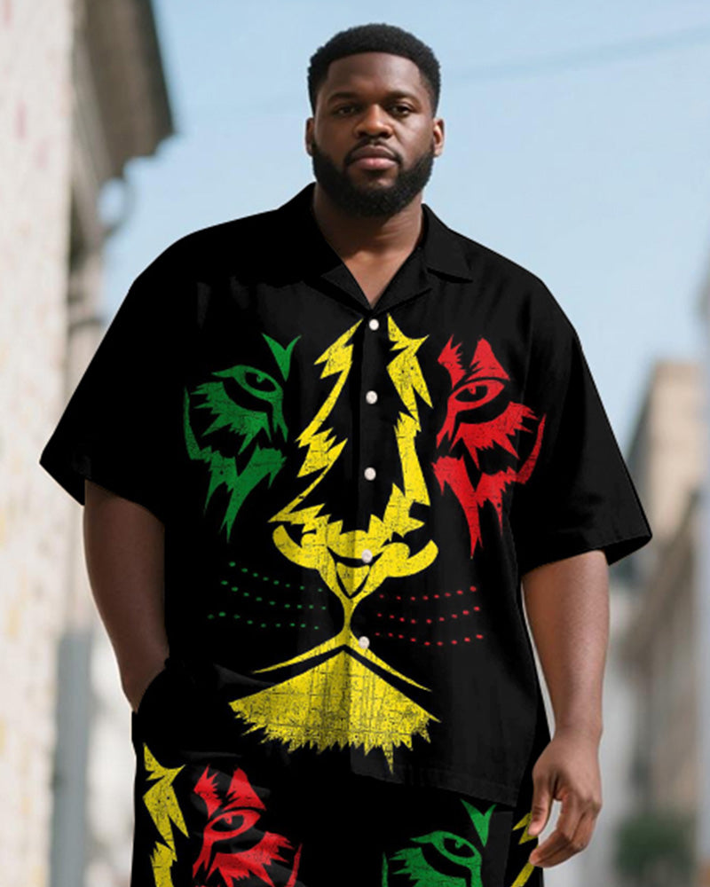 Men's Plus Size Juneteenth Tiger Tree Of Life Print Shirt Shorts Suit