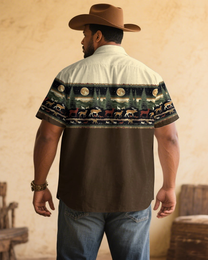 Men's Plus Size Khaki & Apricot Western Denim Cotton Blend Short Sleeve Shirt