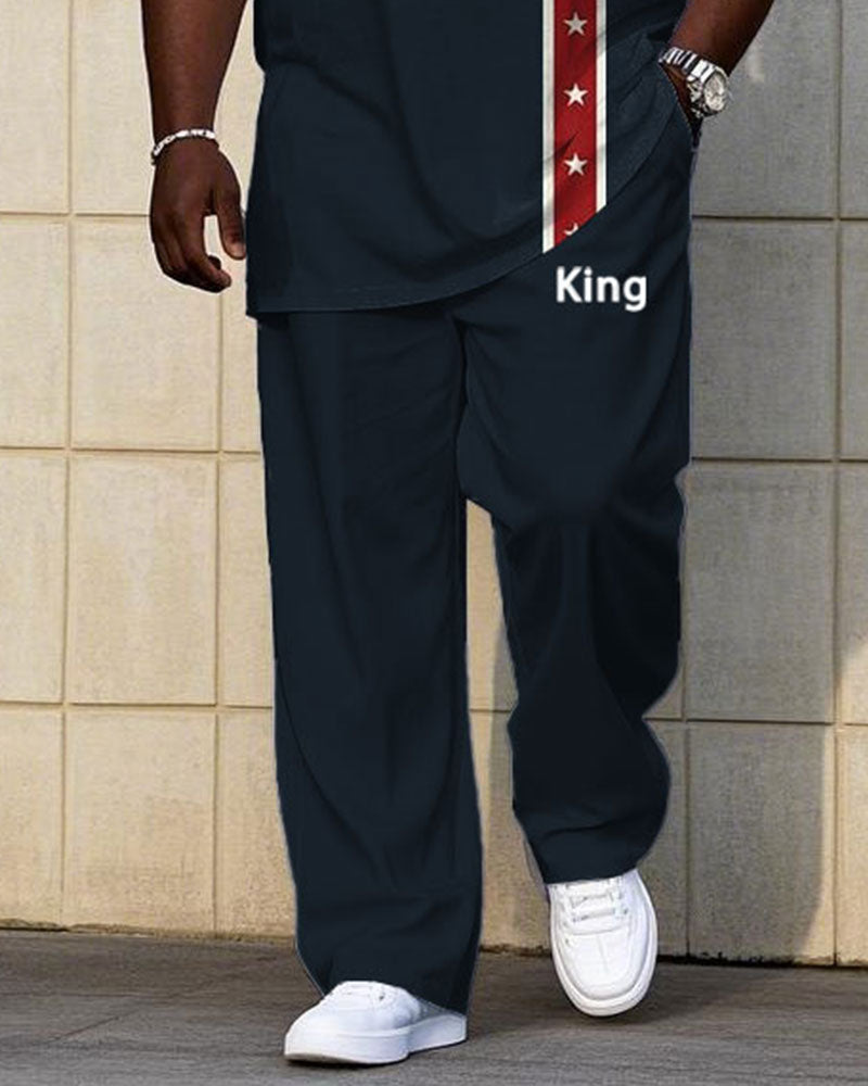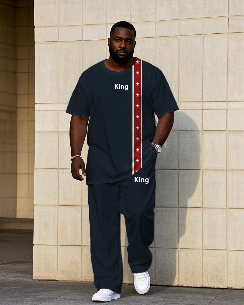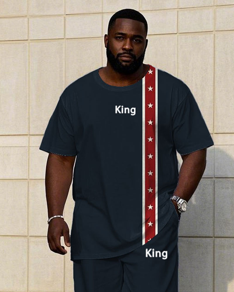Men's Plus Size King Chest Printed Stitching Short Sleeve T-shirt Trousers Suit