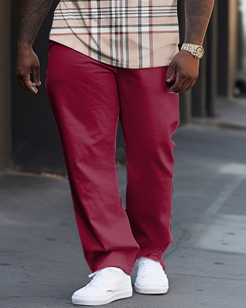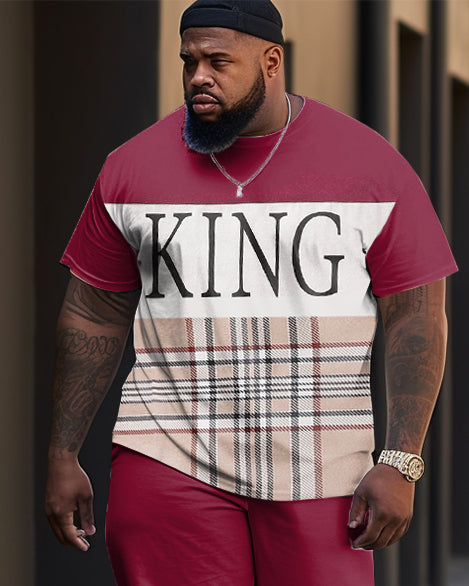 Men's Plus Size King Color-Blocked Plaid Casual Street Short-Sleeved Trousers Casual Two-Piece Set