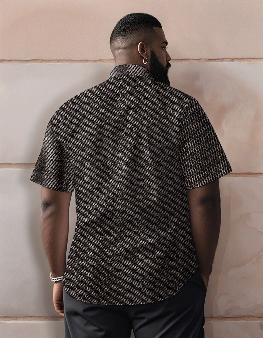 Men's Plus Size Letter Texture Patchwork Print Short Sleeve Shirt