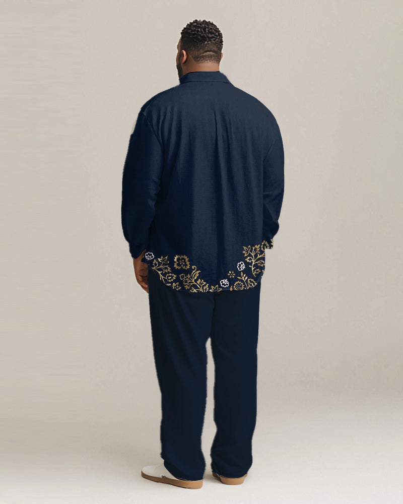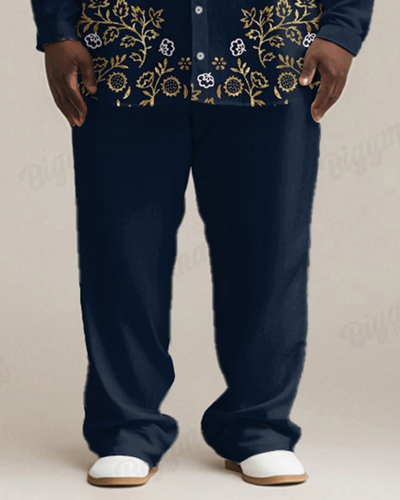 The pants usually feature a simple design that contrasts with the complex pattern of the shirt, making the overall look more balanced.