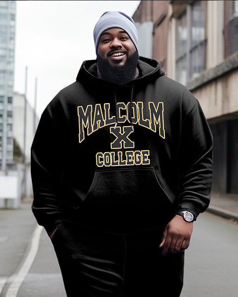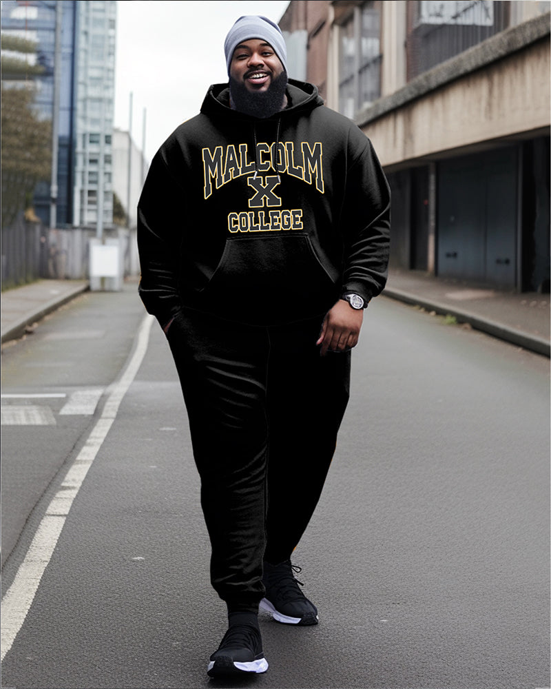 Men's Plus Size Malcolm X College Style Hoodie and Sweatpants Two Piece Set