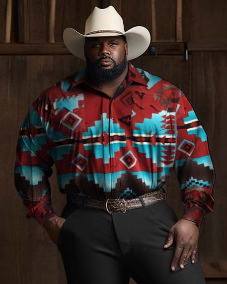 Embrace Western charm with our big and tall denim-style 2-piece set. Featuring a bold rust and turquoise cowboy pattern, the breathable long-sleeve shirt and matching pants offer a relaxed fit for all-day comfort. Pair with boots or a hat for an effortless, iconic Western style.