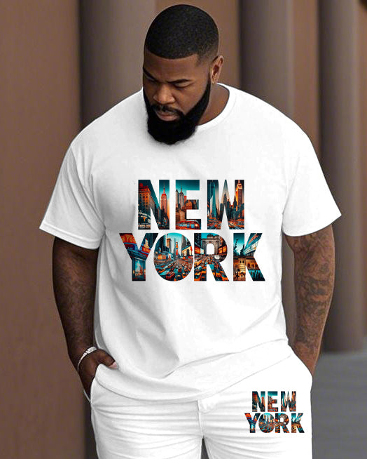 Men's Plus Size New York City Alphabet Short Sleeve T-Shirt Shorts Suit