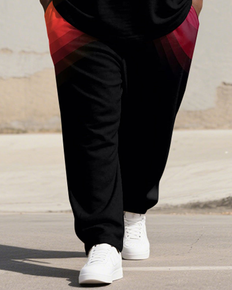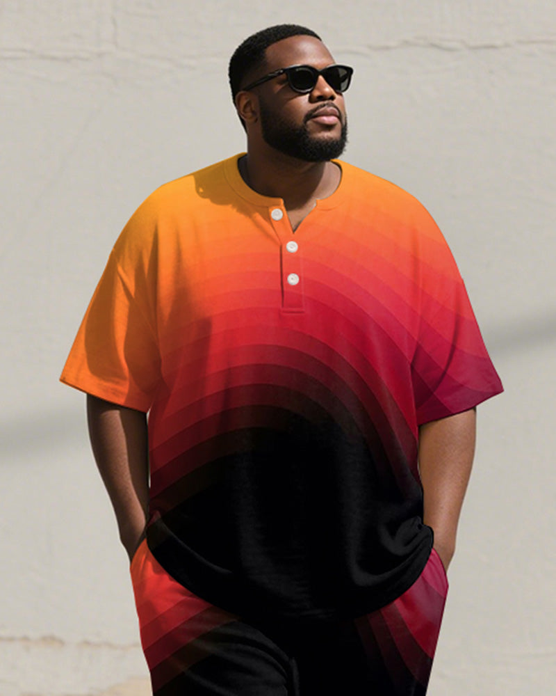 Men's Plus Size Orange Gradient Print Henry Collar T-Shirt Pants Suit