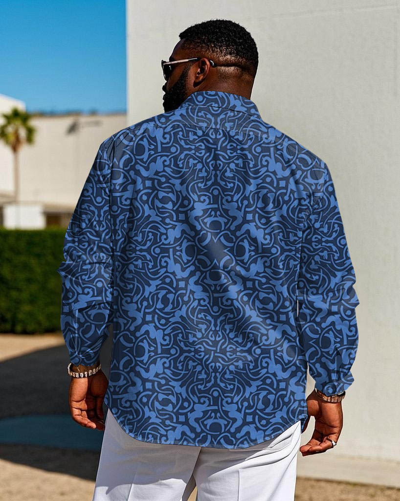 Men's Plus Size Oriental Textured Jacquard Business Long Sleeve Shirt