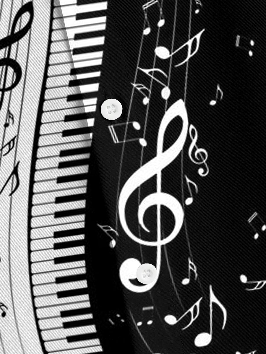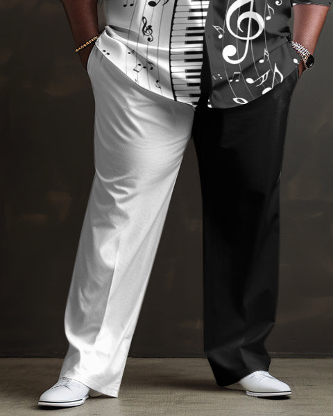 This set in a striking black-and-white color-block style is your perfect match. Featuring unique keyboard note prints, this set exudes sophistication with a touch of artistic flair. The relaxed-fit silhouette enhances your figure. Available in larger sizes, this set transitions effortlessly between occasions.
