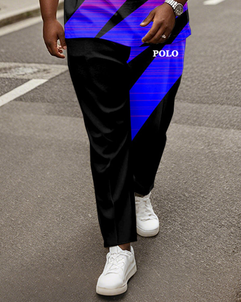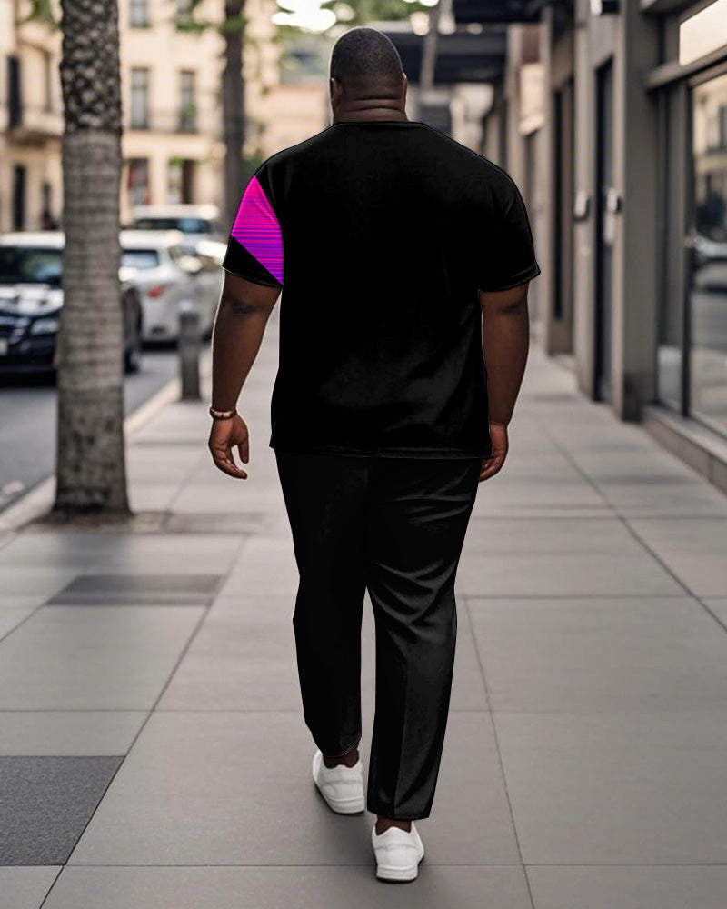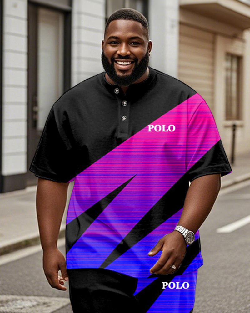 Men's Plus Size Pink Blue Gradient Colorblock Alphabet Print Henry Collar T-Shirt Trousers Suit