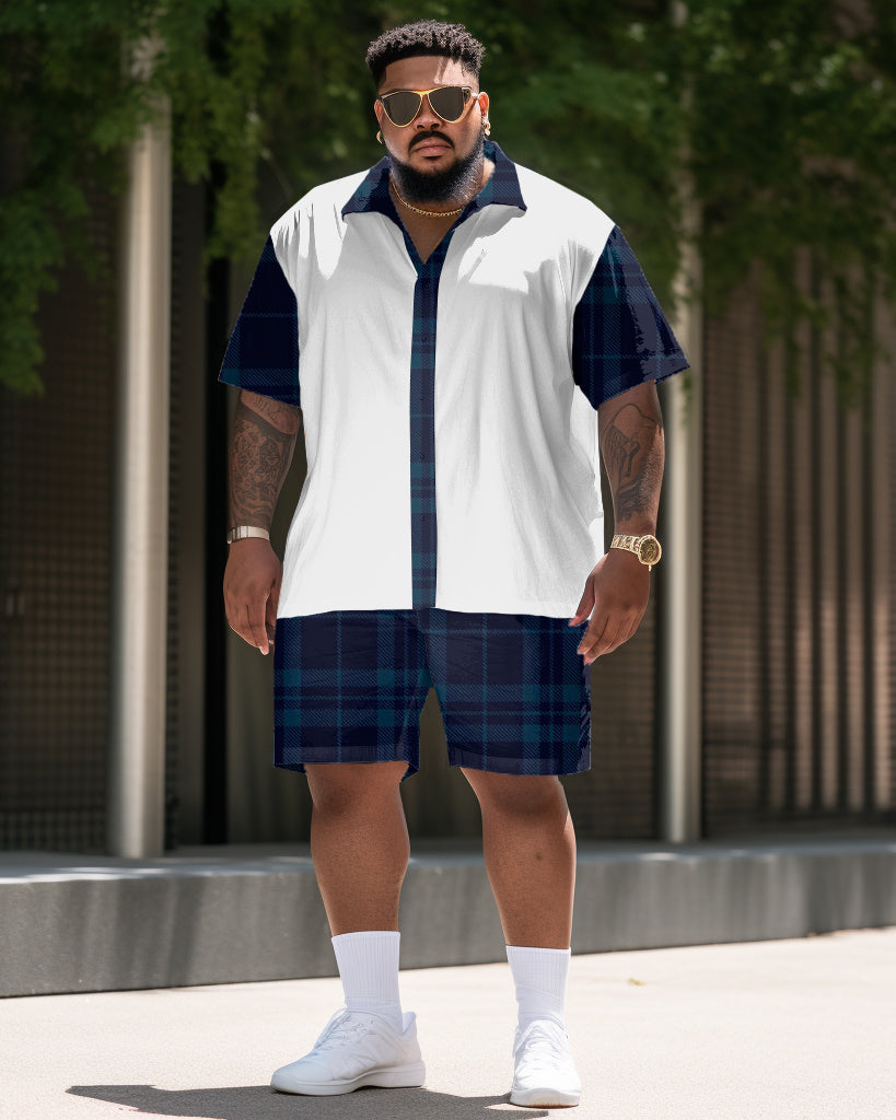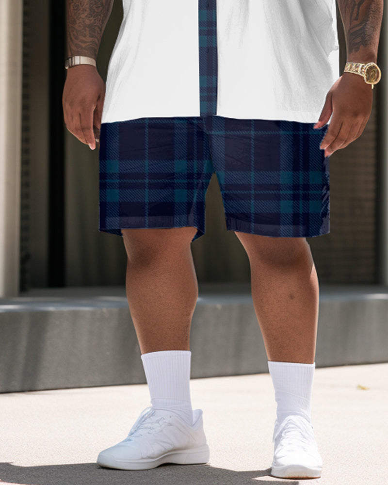 Men's Plus Size Plaid Short Sleeve Shirt Shorts Set