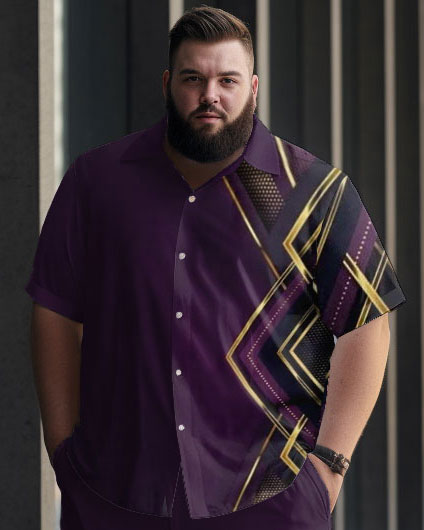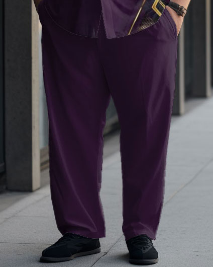 This purple-style men's walking set combines fashion and elegance. The metal pattern print on the left adds a unique personality to the look. Its loose version ensures comfort, and various sizes are available to meet the needs of different body types. It can show your confidence and taste.