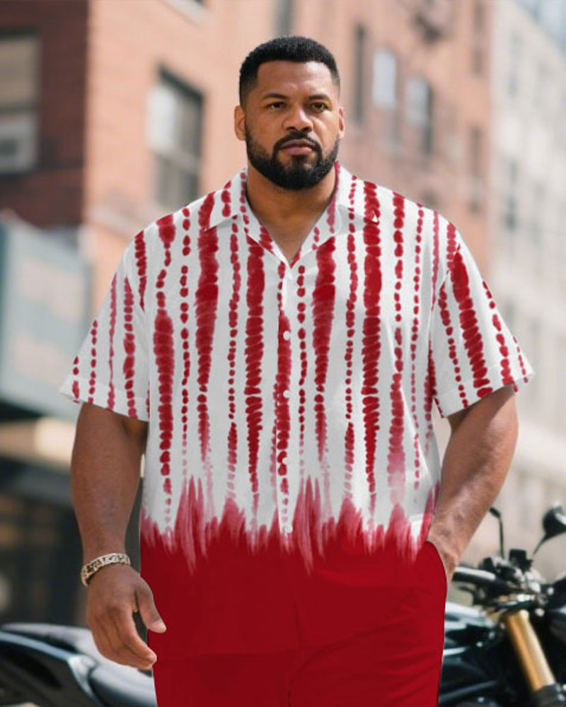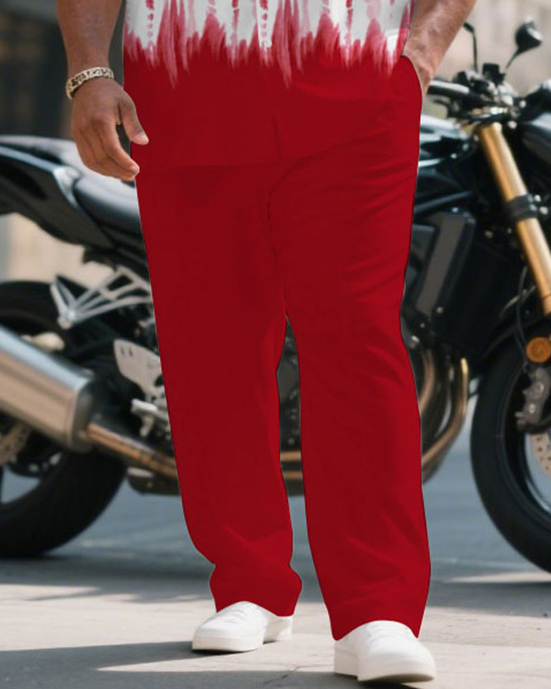 Men's Plus Size Red Handmade Eco-friendly Tie-dye Craft Short Sleeve Shirt Trousers Suit