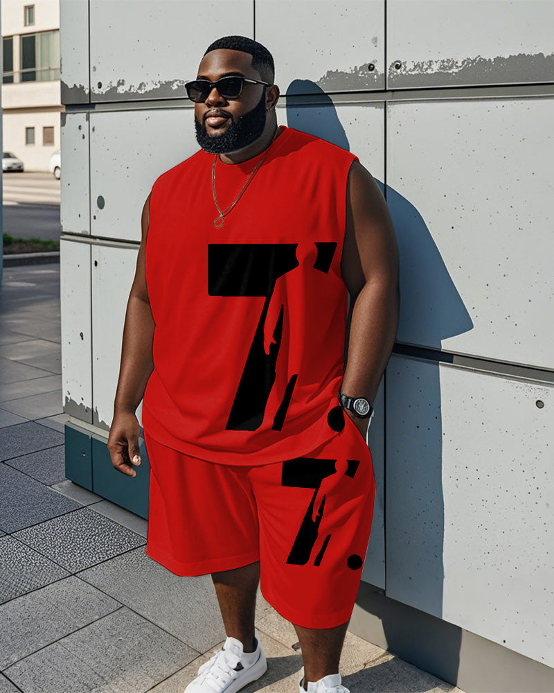 Men's Plus Size Red Size 7 Football Print Tank Top Shorts Suit