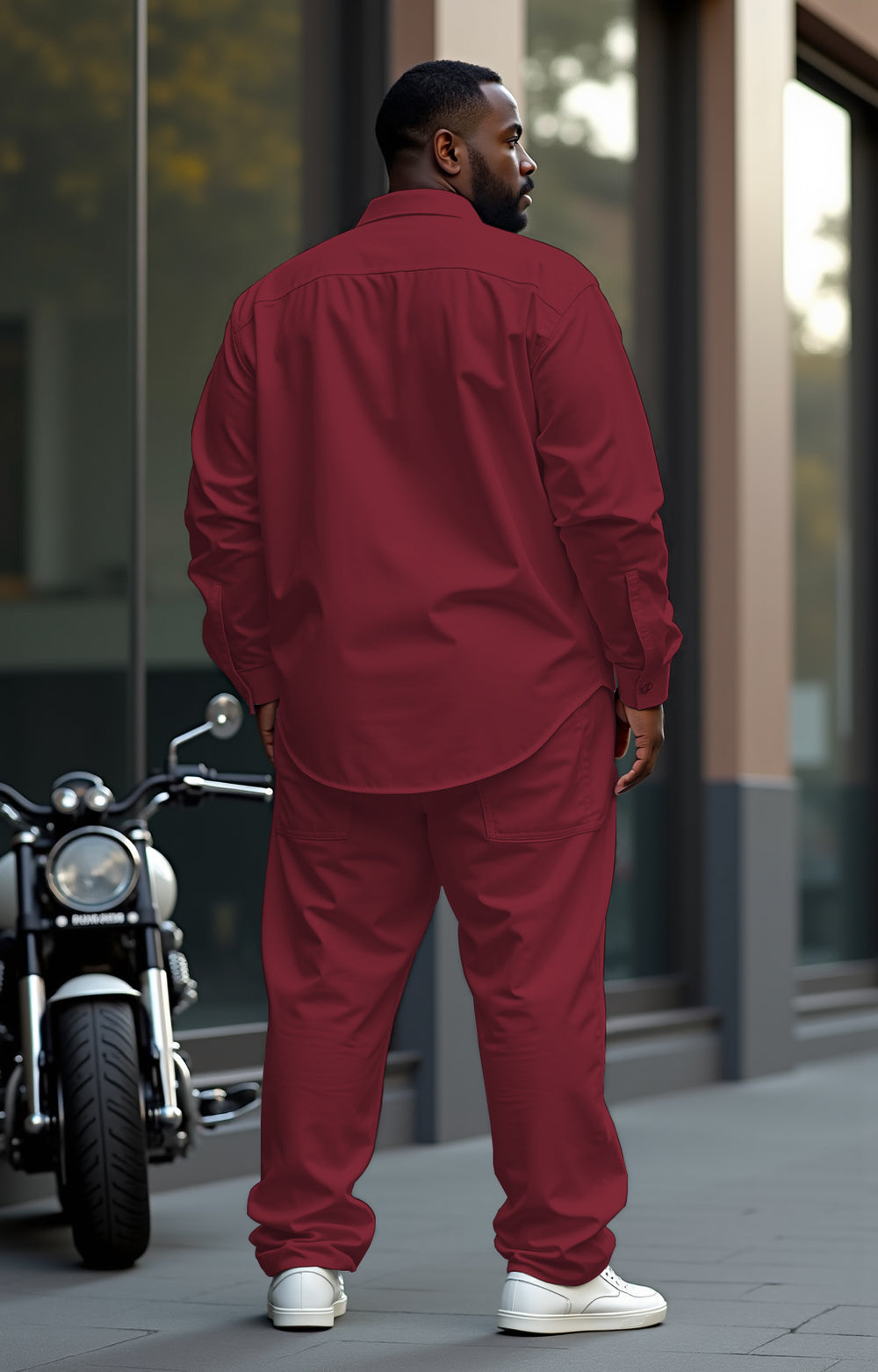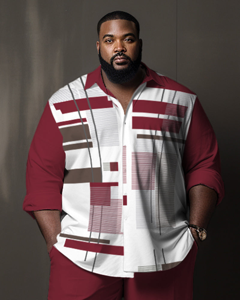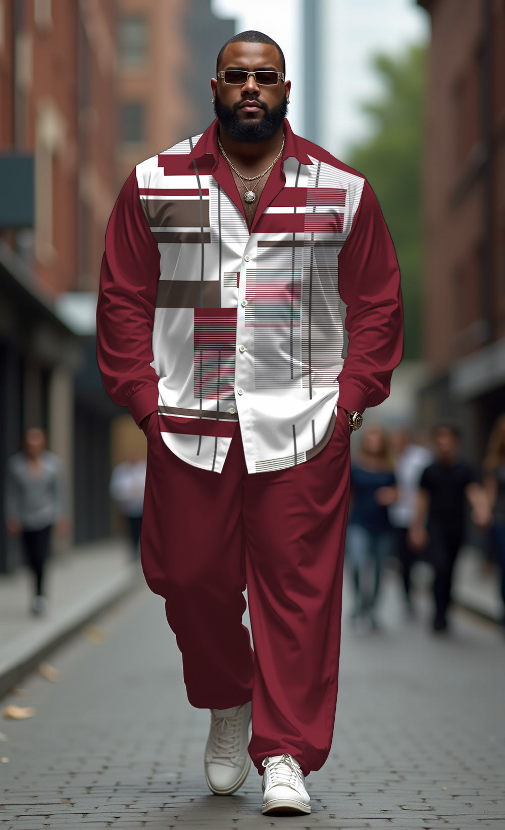 This men's red square gradient walking set with bright red hue and white lines shows an extraordinary fashion. It combines comfort and style, suitable for urban leisure or outdoor light sports. Whether it is a daily travel or a weekend outing, you can be the focus and show your vitality.