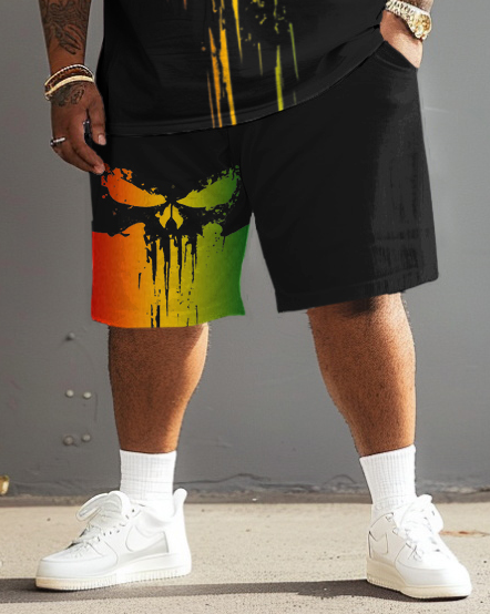 Men's Plus Size Reggae Skull Oil Painting T-Shirt Shorts Suit