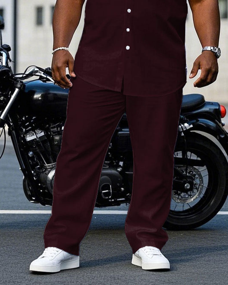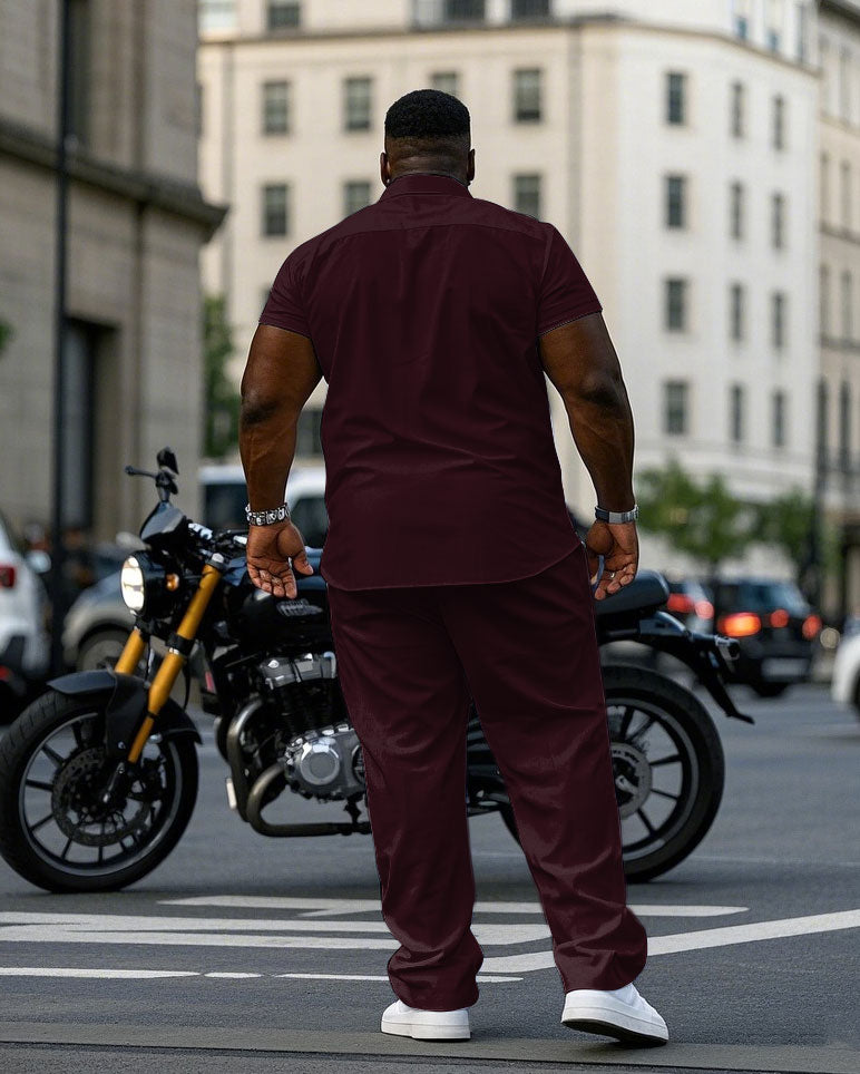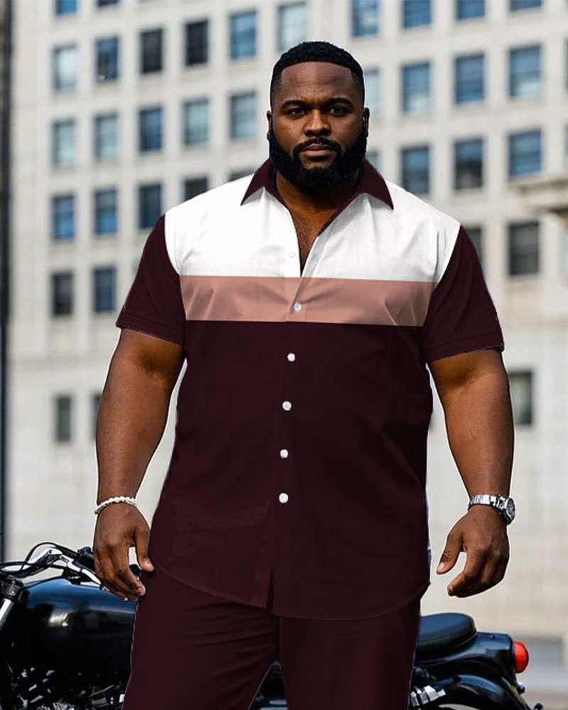 Men's Plus Size Retro Fuchsia & White Colorblock Short Sleeve Shirt Pants Suit