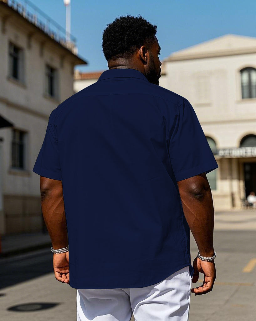 Men's Plus Size Royal Blue Abstract Animal Head Print Short Sleeve Shirt