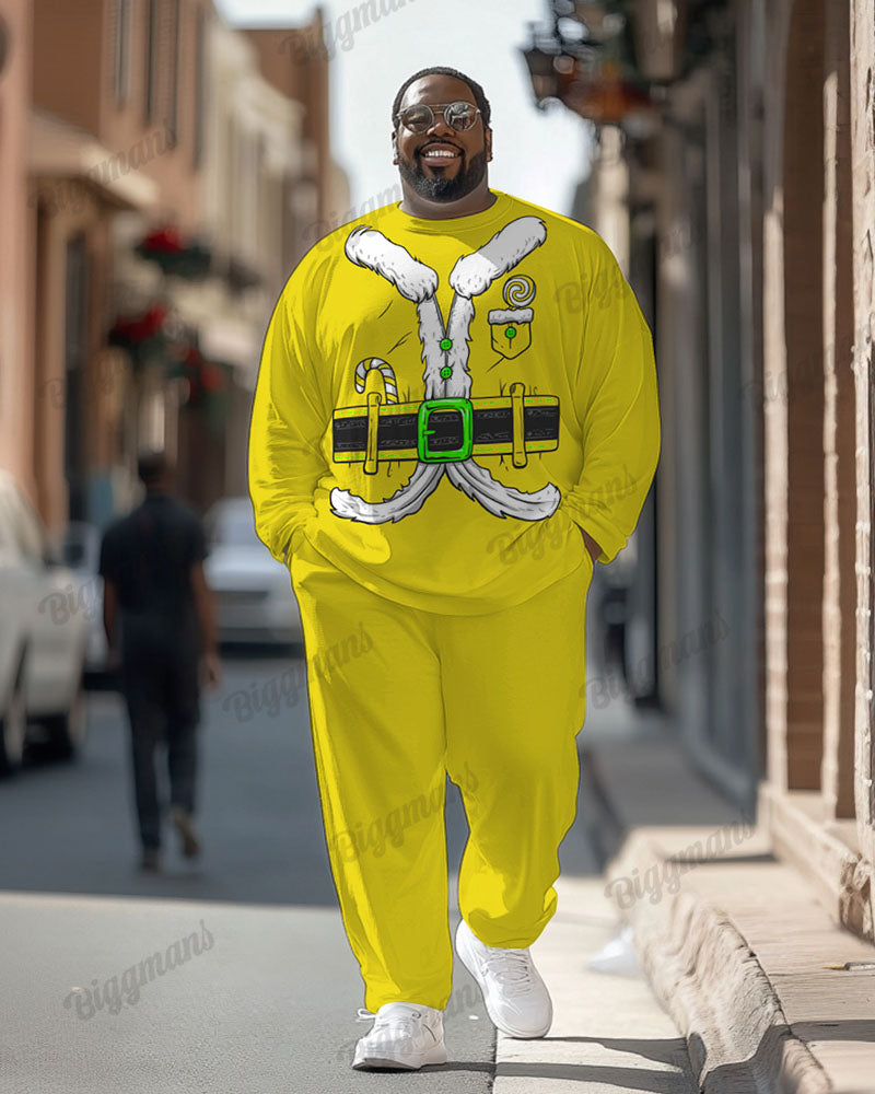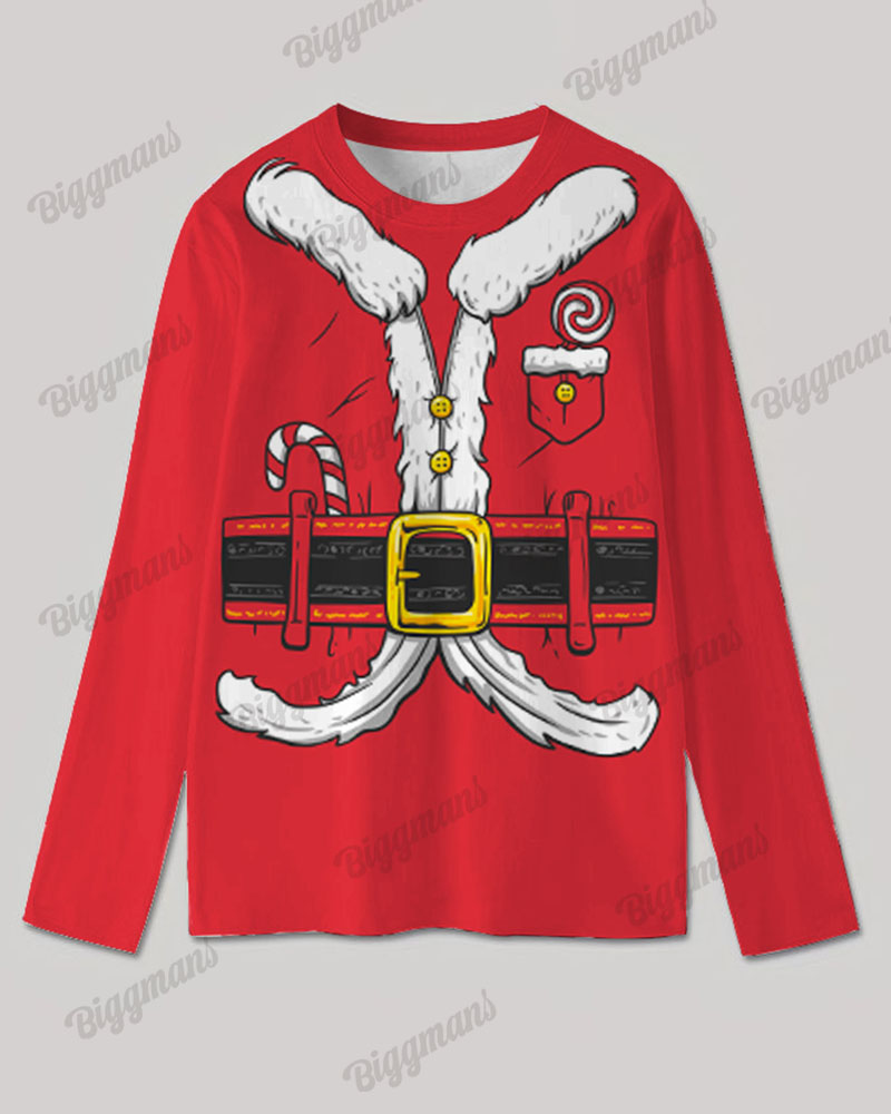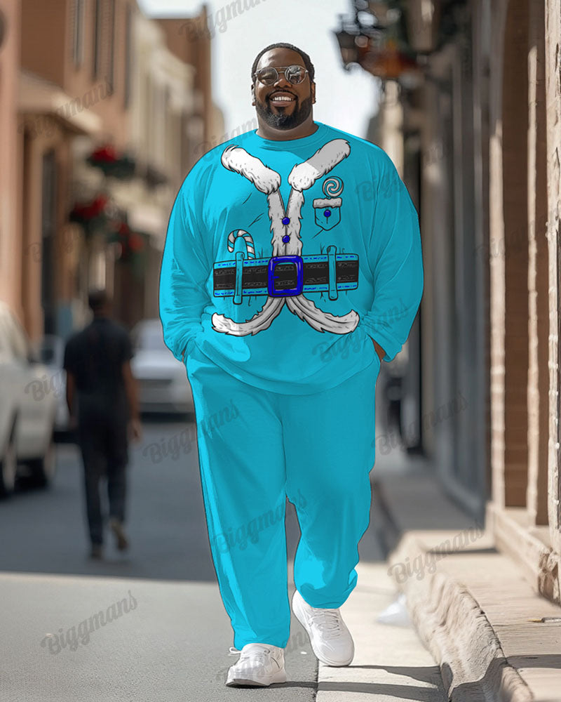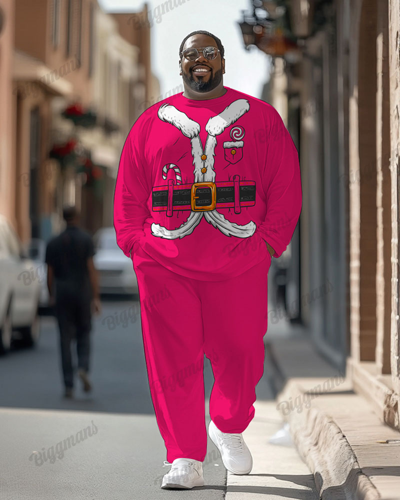 This men's plus size suit is made for Christmas. The long-sleeved T-shirt features a cartoon image of Santa Claus, which is cute and adorable for a festive look. The long pants are loose and comfortable, coordinating with the suit. The overall plus size design accommodates a wide range of body shapes and sizes, making it easy for men to become Santa Claus and be the center of attention at Christmas time.