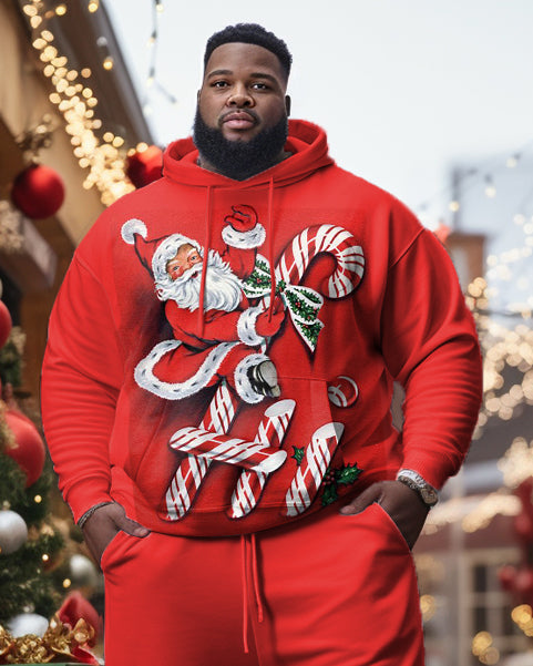 Men's Plus Size Santa Claus Merry Christmas Cane Hoodie Set of Two