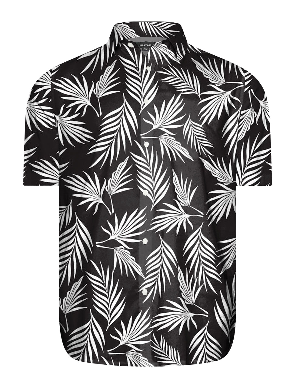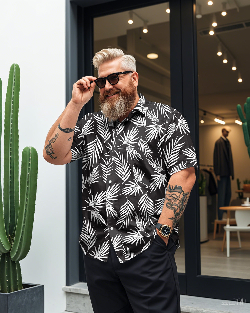 Men's Plus Size Shawat Coconut Black Plant Silhouette Short Sleeve Shirt