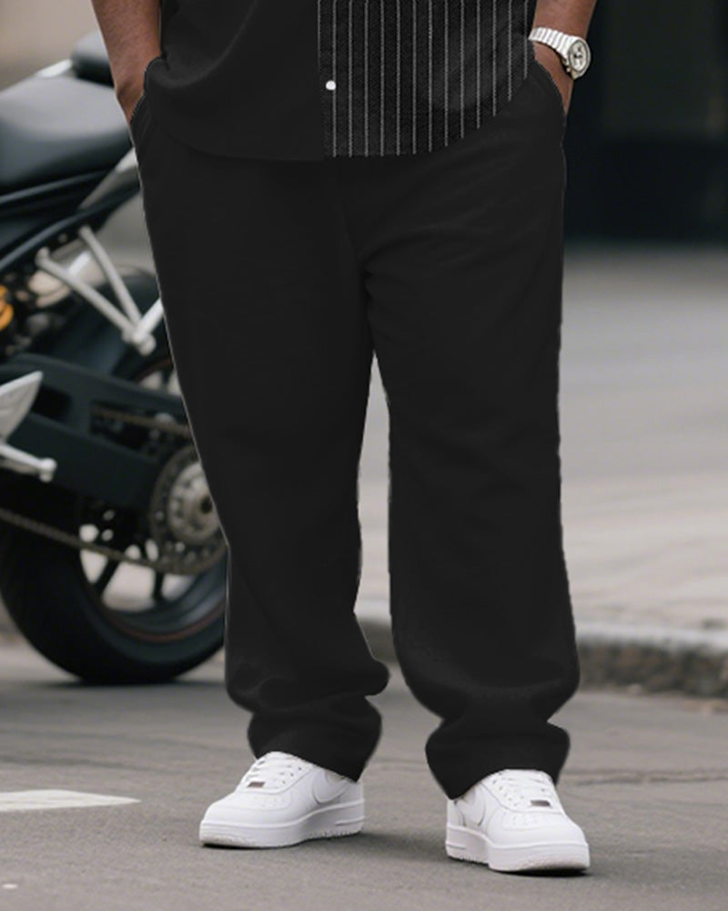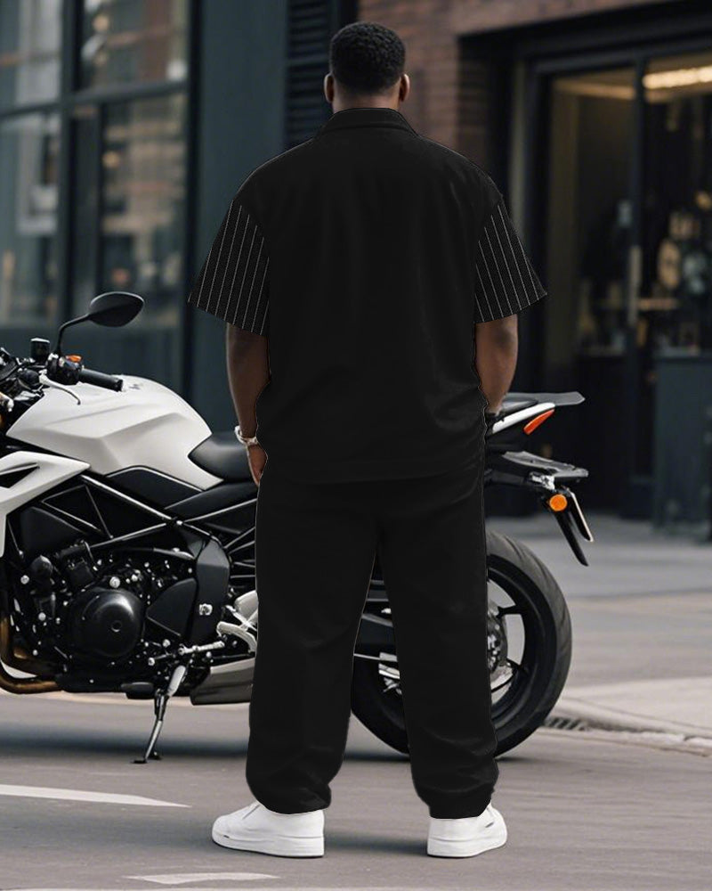 Men's Plus Size Simple Black Stripe Patchwork Printing Pocket Short Sleeve Shirt Trousers Suit