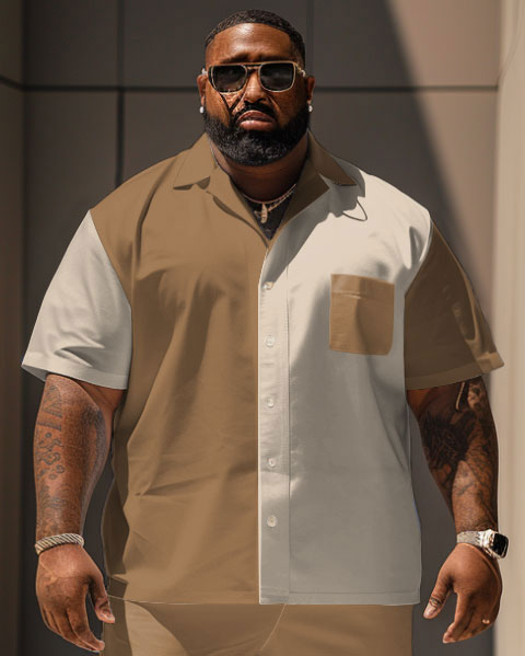 Looking for a versatile outfit that transitions from casual to business attire? This big men's two-piece set is for you, which features a khaki color block . The soft and breathable fabric ensures all-day comfort. Whether it's a casual event or a business meeting, this set can handle it.